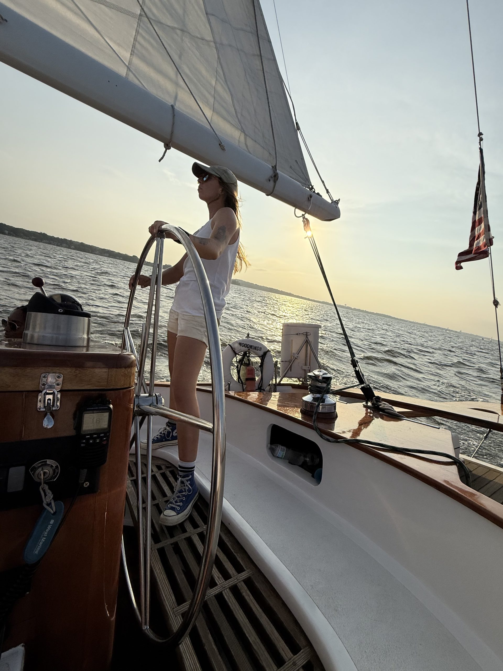 Dave sailing the Woodwind while I cheer him on as we celebrate our 10 anniversary. Photo by Daylen Bushnell of Joppa, MD