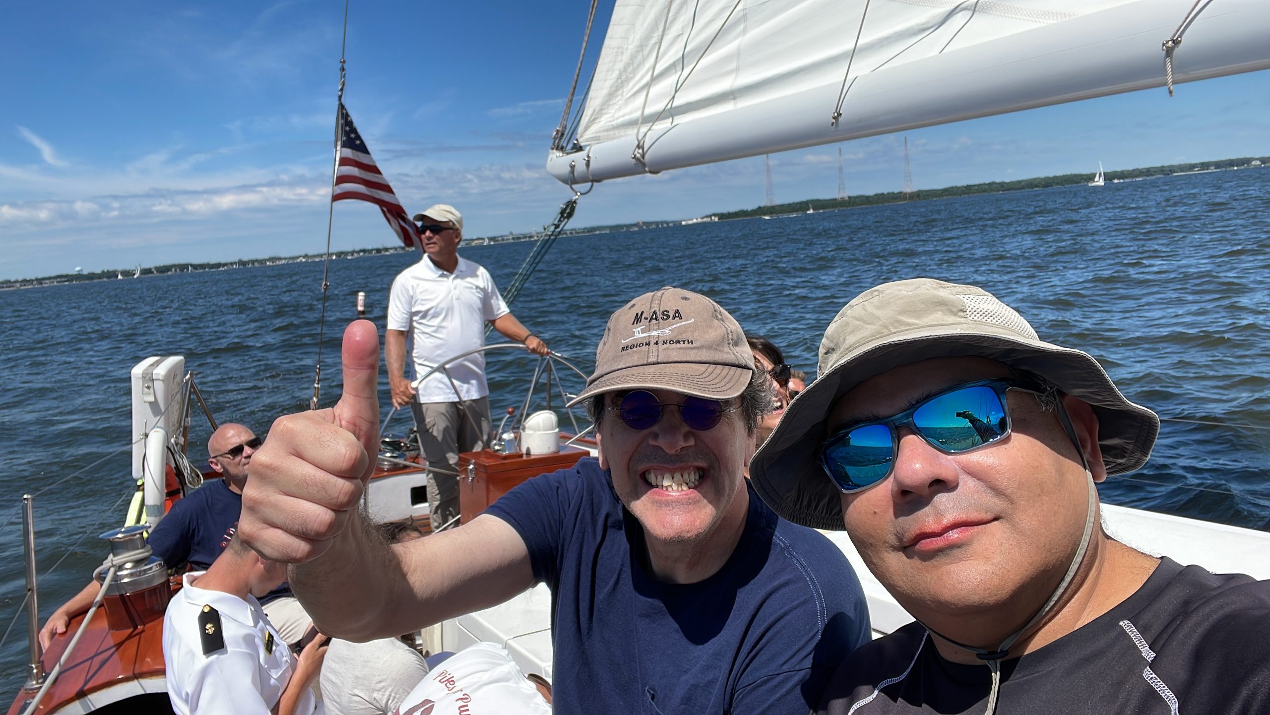 We celebrated our 40th anniversary with you guys . Sailing, drinks and crew were wonderful, but best part was seeing young Navy Shipman sailing the boat with American flag flying behind him . Plan to come back in spring to bring grandchildren. Thank you 🇺🇸⛵️ Photo by Terry Webster of Salisbury, Maryland
