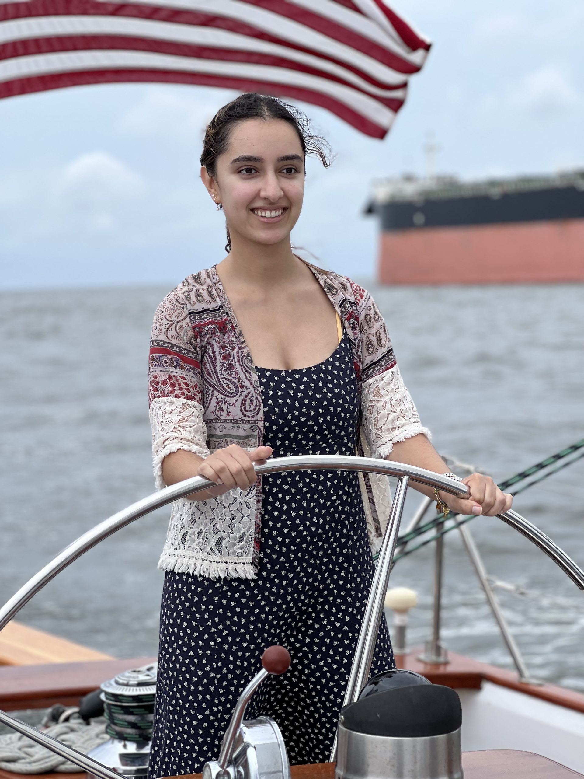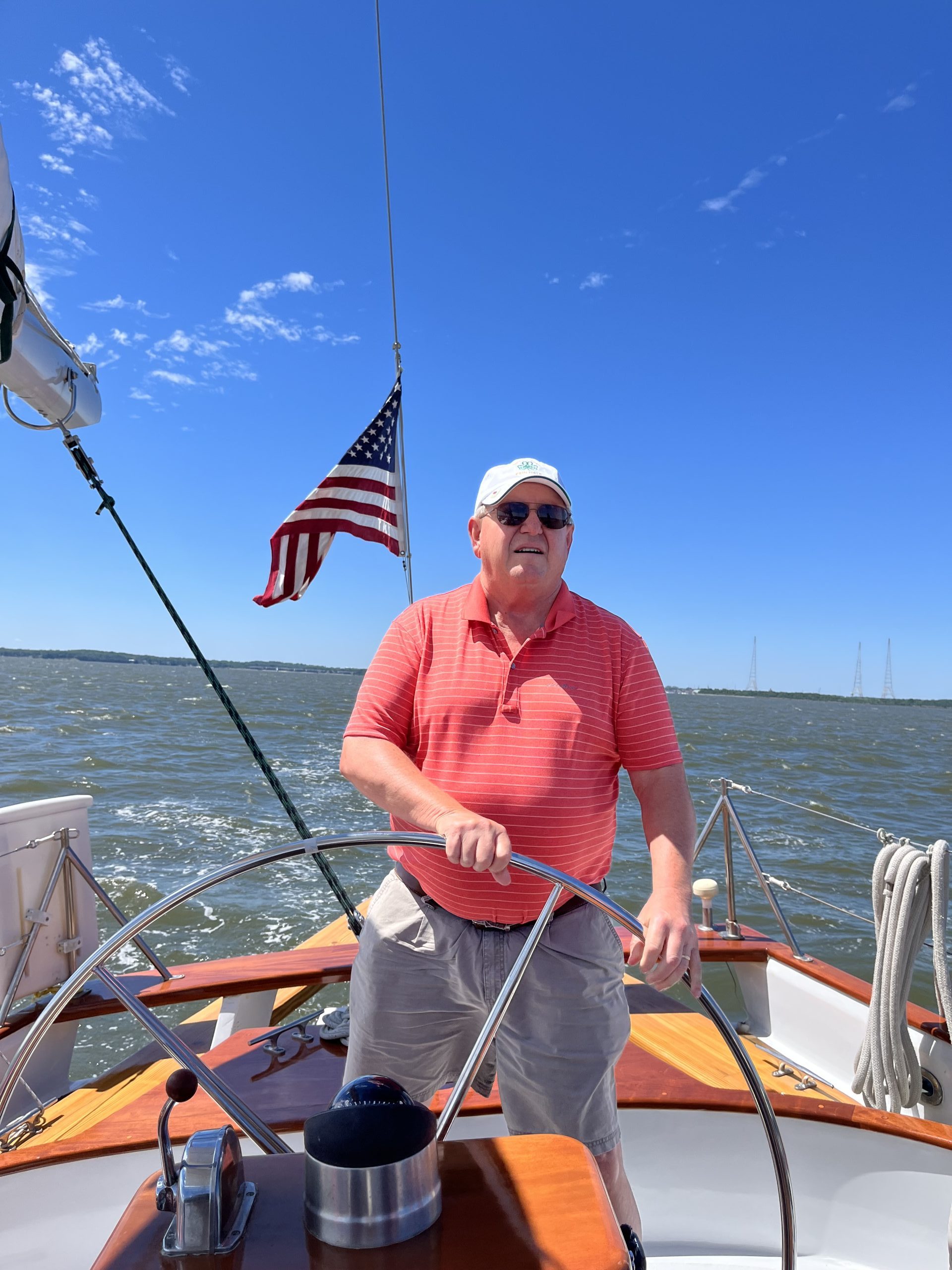 Living out one of my bucket list dreams to steer a sailboat Photo by Janine Eduljee of Alexandria, Virginia