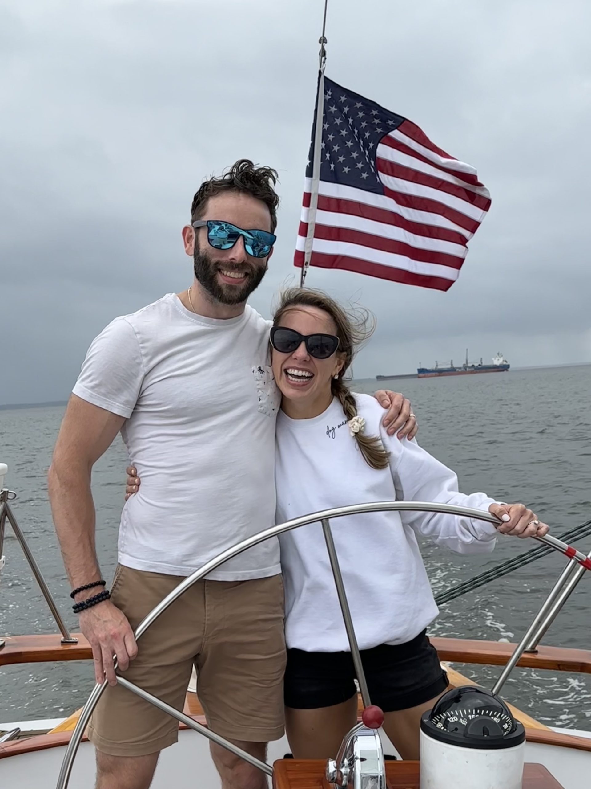My husband and I had just gotten married and we’re celebrating our honeymoon! Our captain told us to look happily married in the photo and I think we nailed it! We had such a great time! Photo by Lauren Weiss of Philadelphia, PA