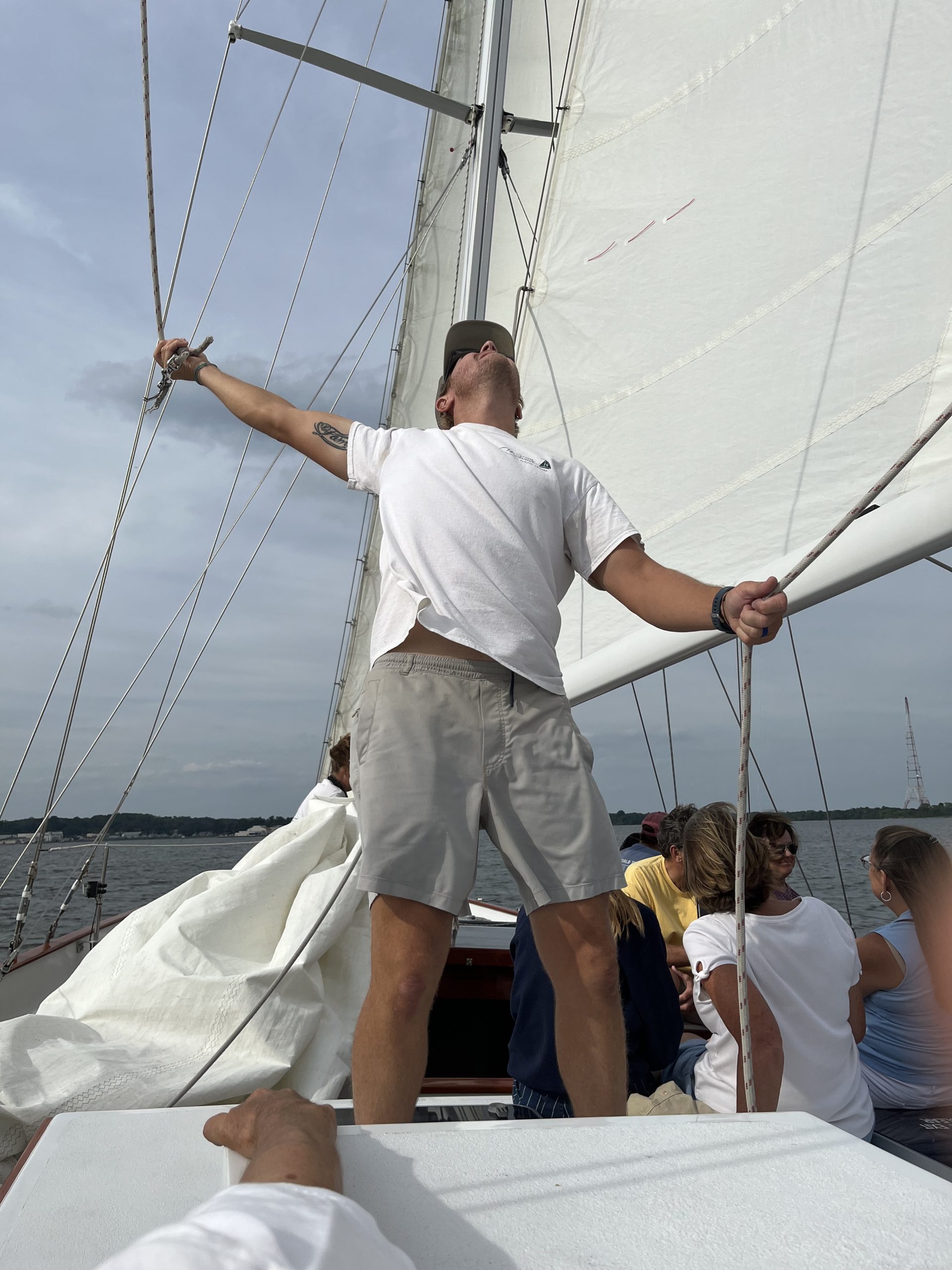 Michael getting sails ready for our marvelous cruise around the bay. Photo by Connie Jacome of Oakton, VA