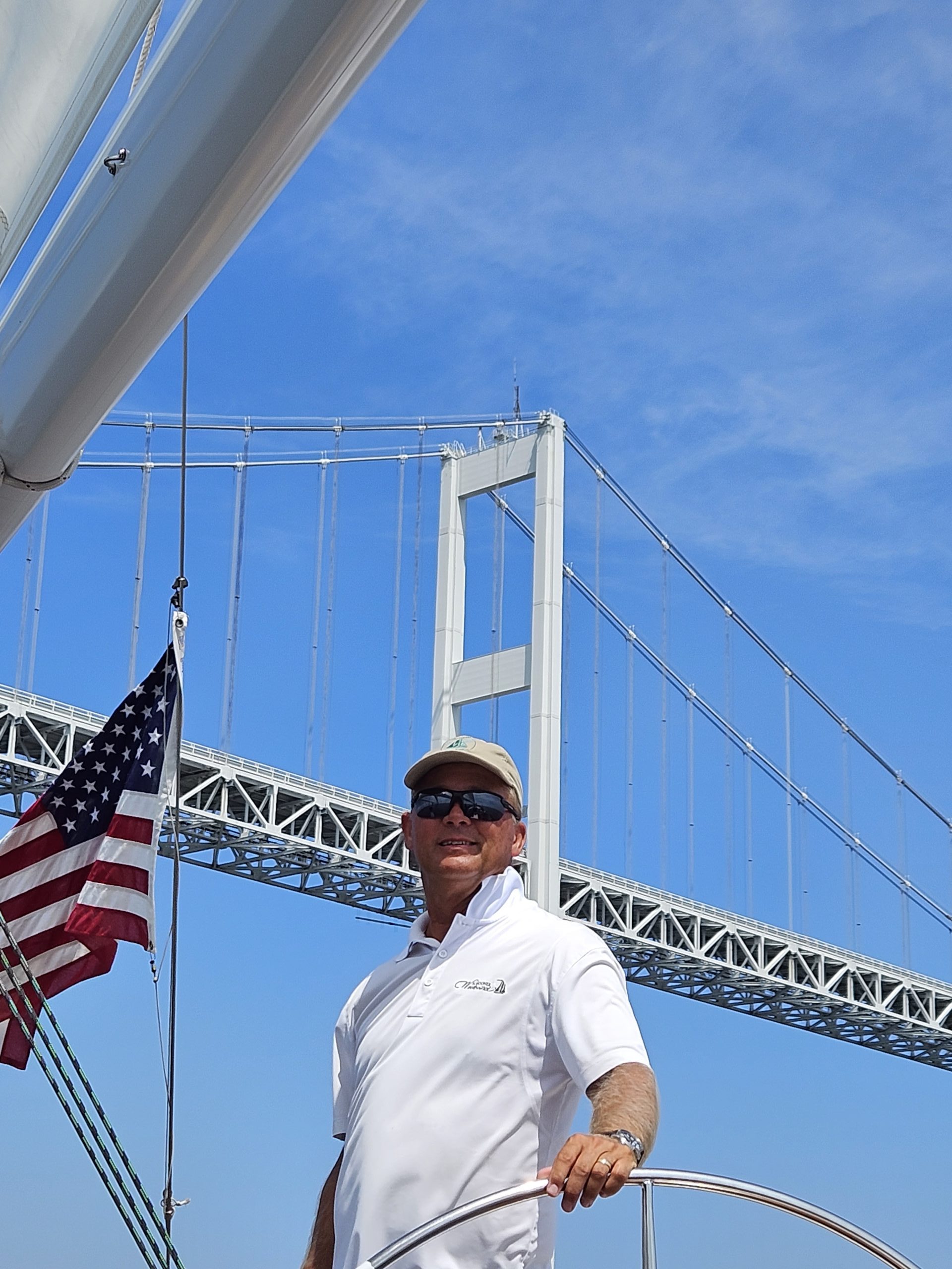 Captain Andy under the Chesapeake Bay Bridge. Photo by Barbara Cardellichio of Fairfax, Virginia