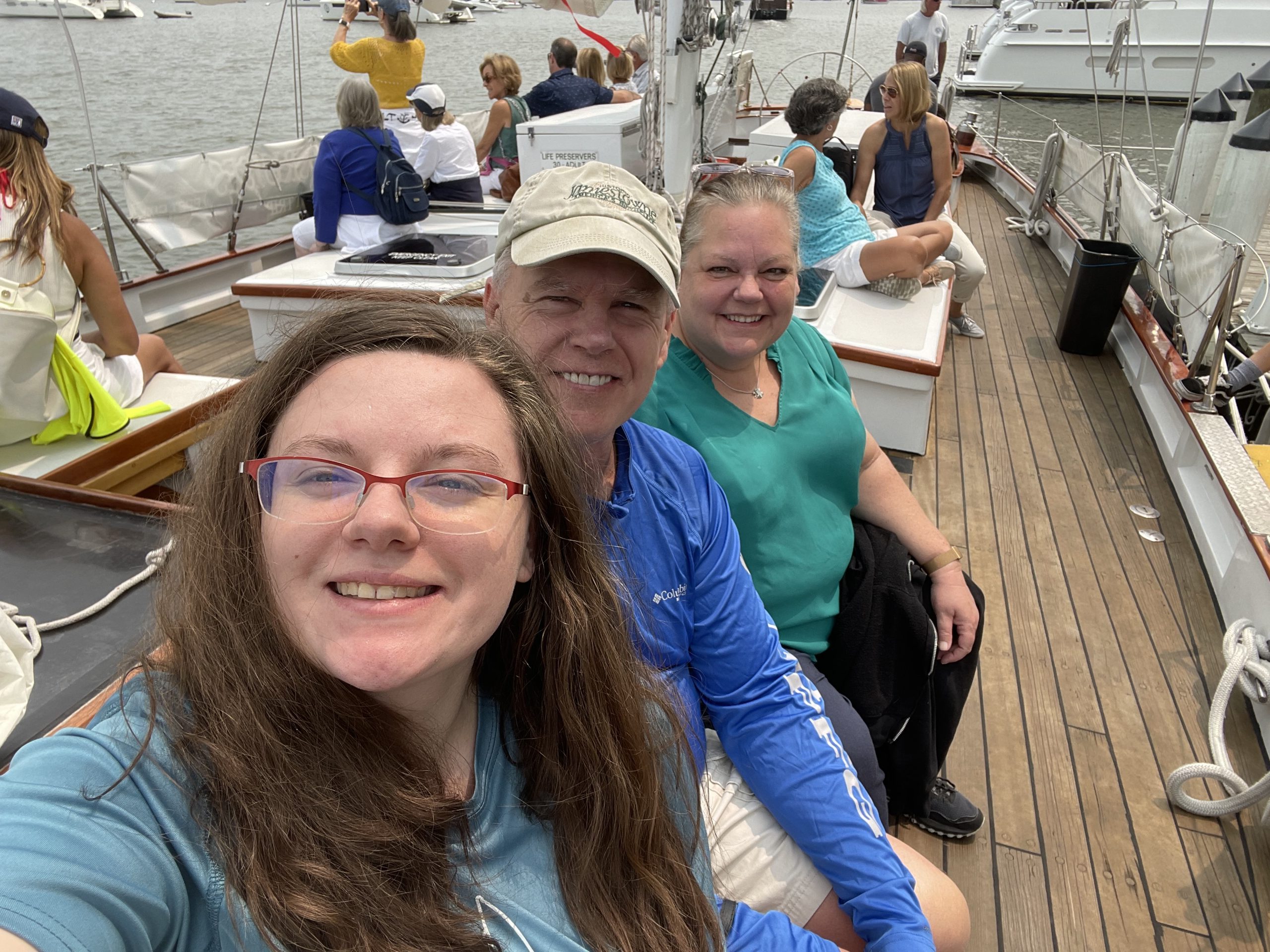 This is a photo with andrew, ed, and captain andy on the sunset cruise on july 31st Photo by Mackenzie White of Greensboro, Nc