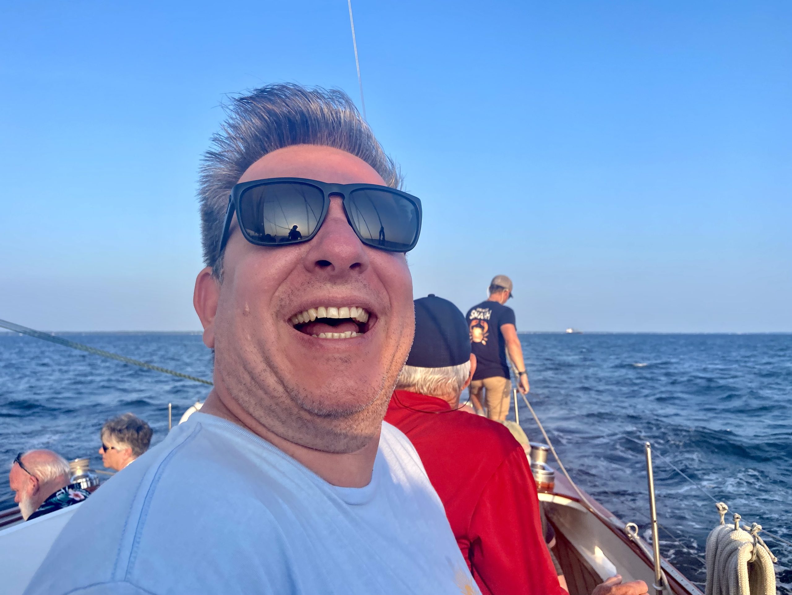 This is my brother Steven Angel who when first asked if he wanted to ride the Woodwind, said No, he changed his mind to yes after I asked a second time…after the Wednesday race, he declared he can’t believe he didn’t ride on the schooner sooner. Photo by Scottee Angel of Los Angeles, CA