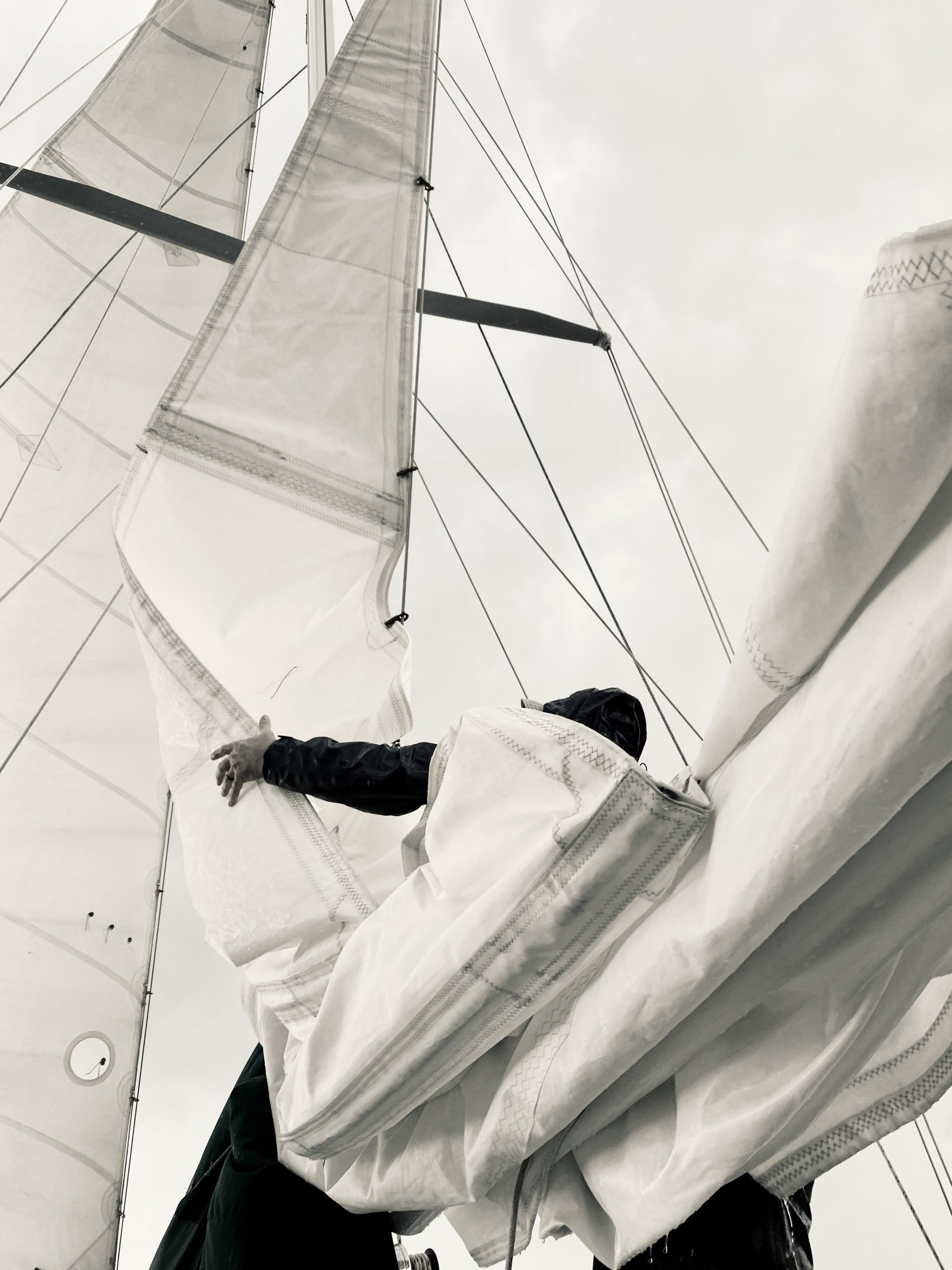 Photos of my kids and his friends pulling the main sail. Photo by Gerard Ly of Germantown, MD