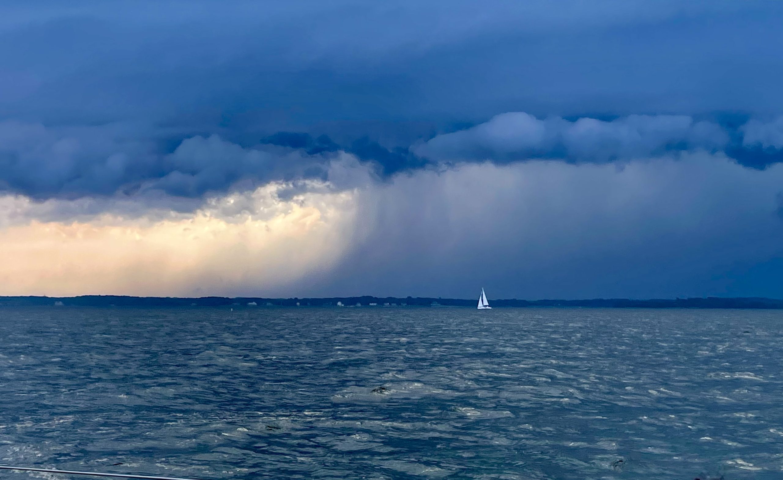 Large storm North, towards Baltimore, off the starboard side of the Woodwind. Captain Mickey kept us nice and dry. Photo by Sheri Schully of North Potomac, MD