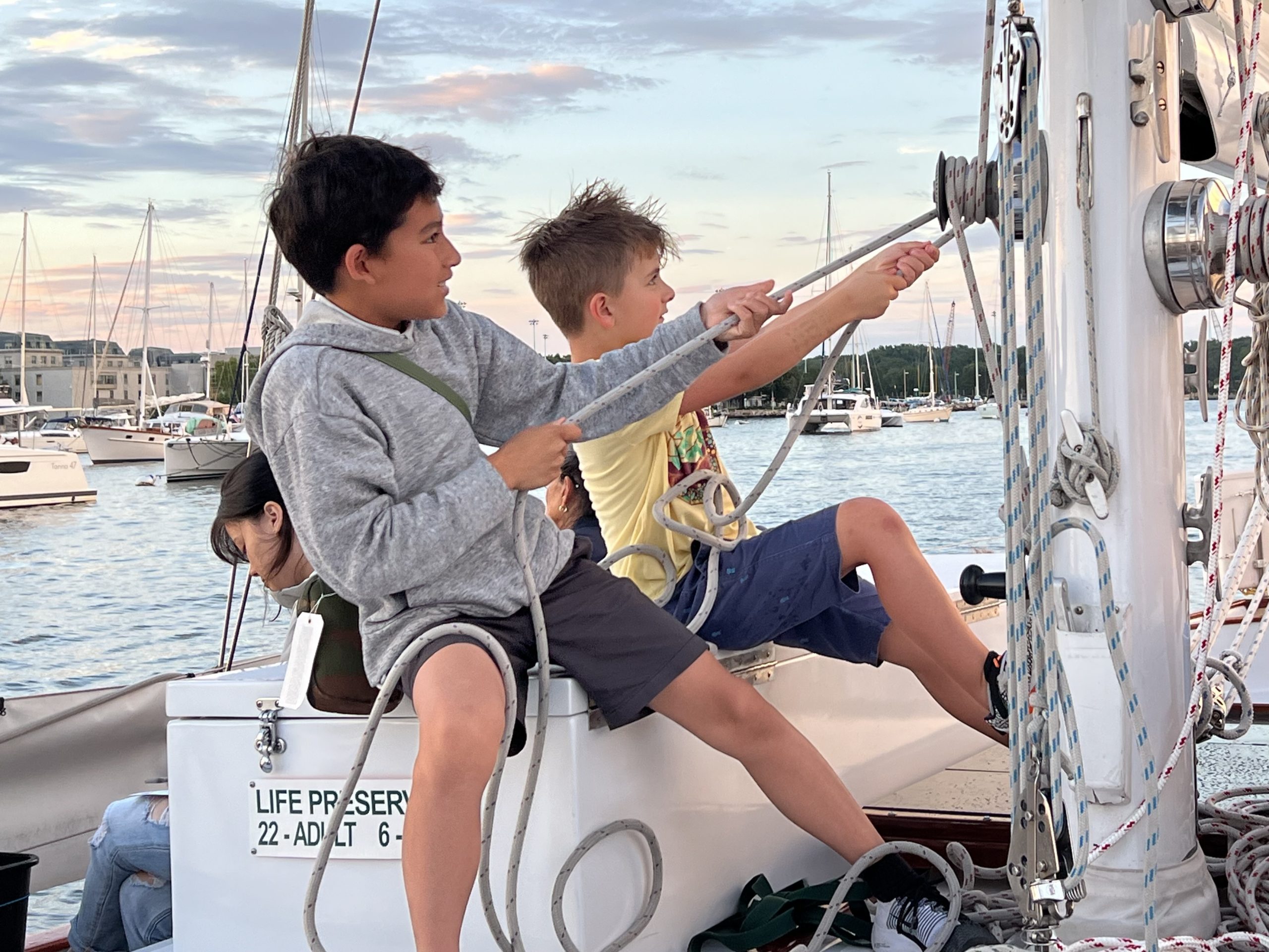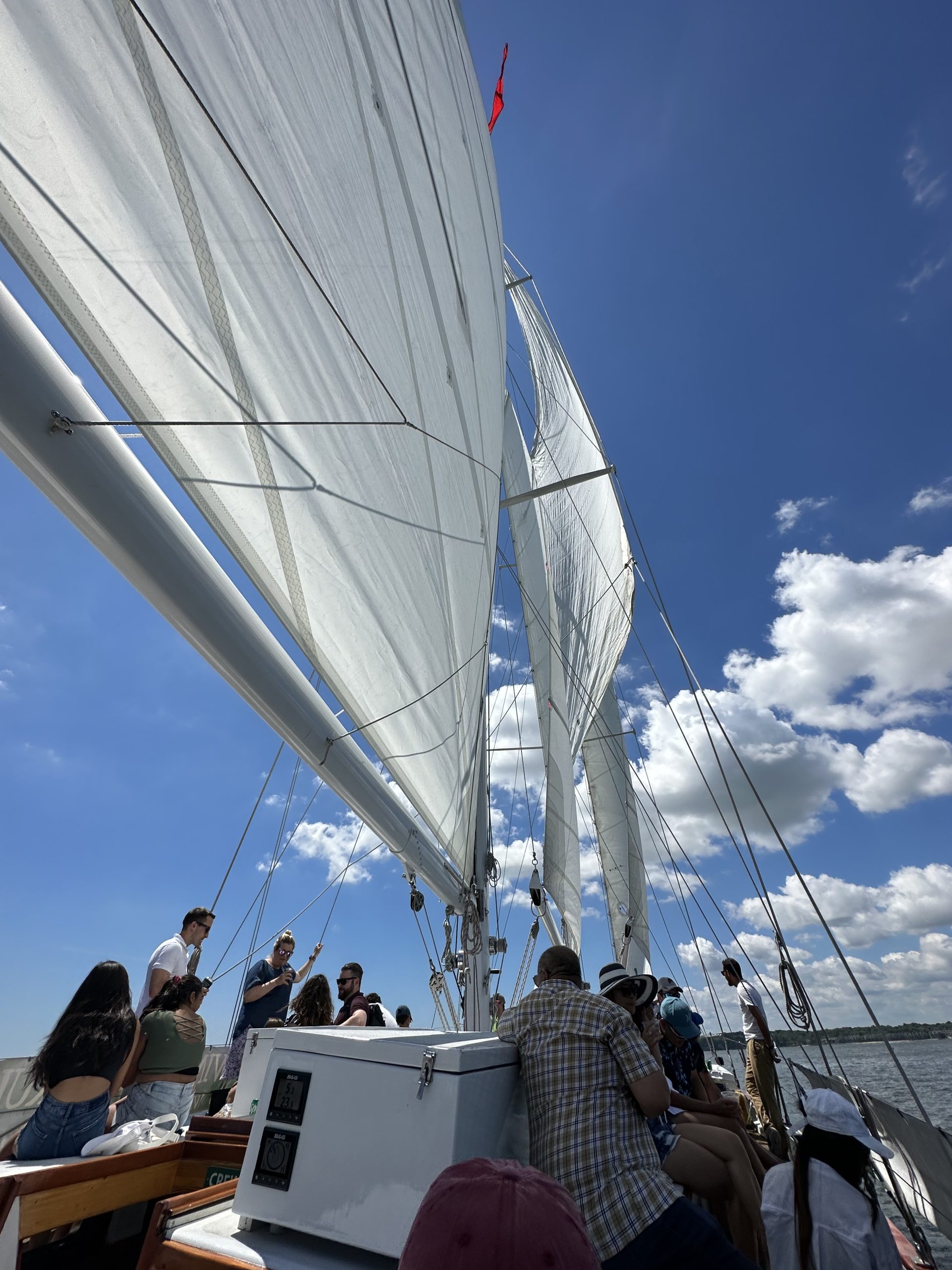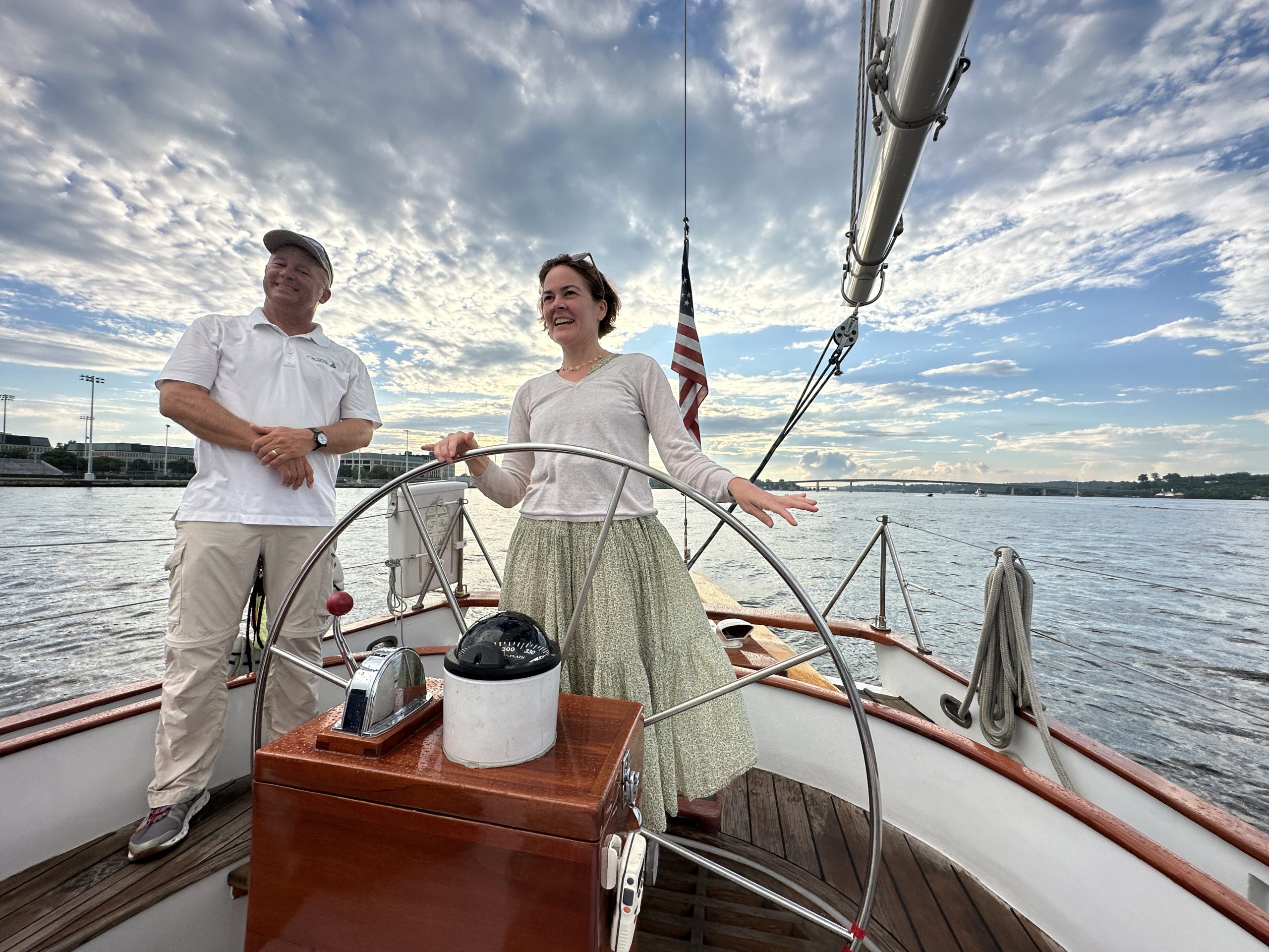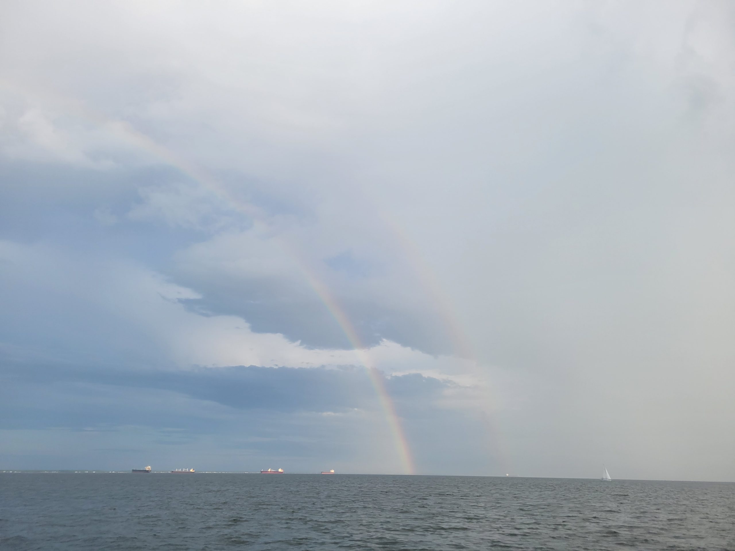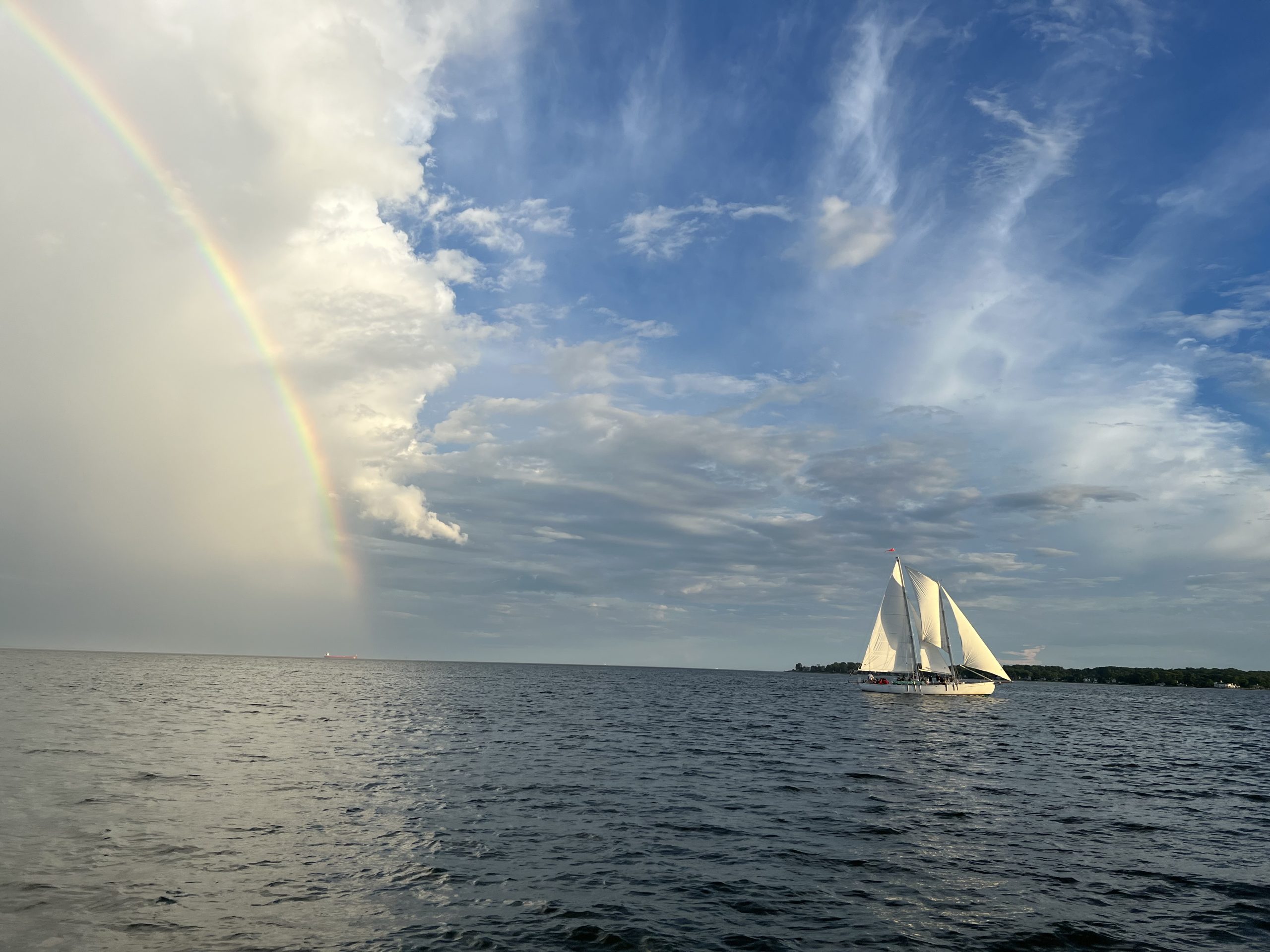 We were worried that the rain would put a damper on our enjoyment of our evening sail. However, it gave us beautiful rainbows for our enjoyment. Photo by Baran Kilical of Annapolis, MD