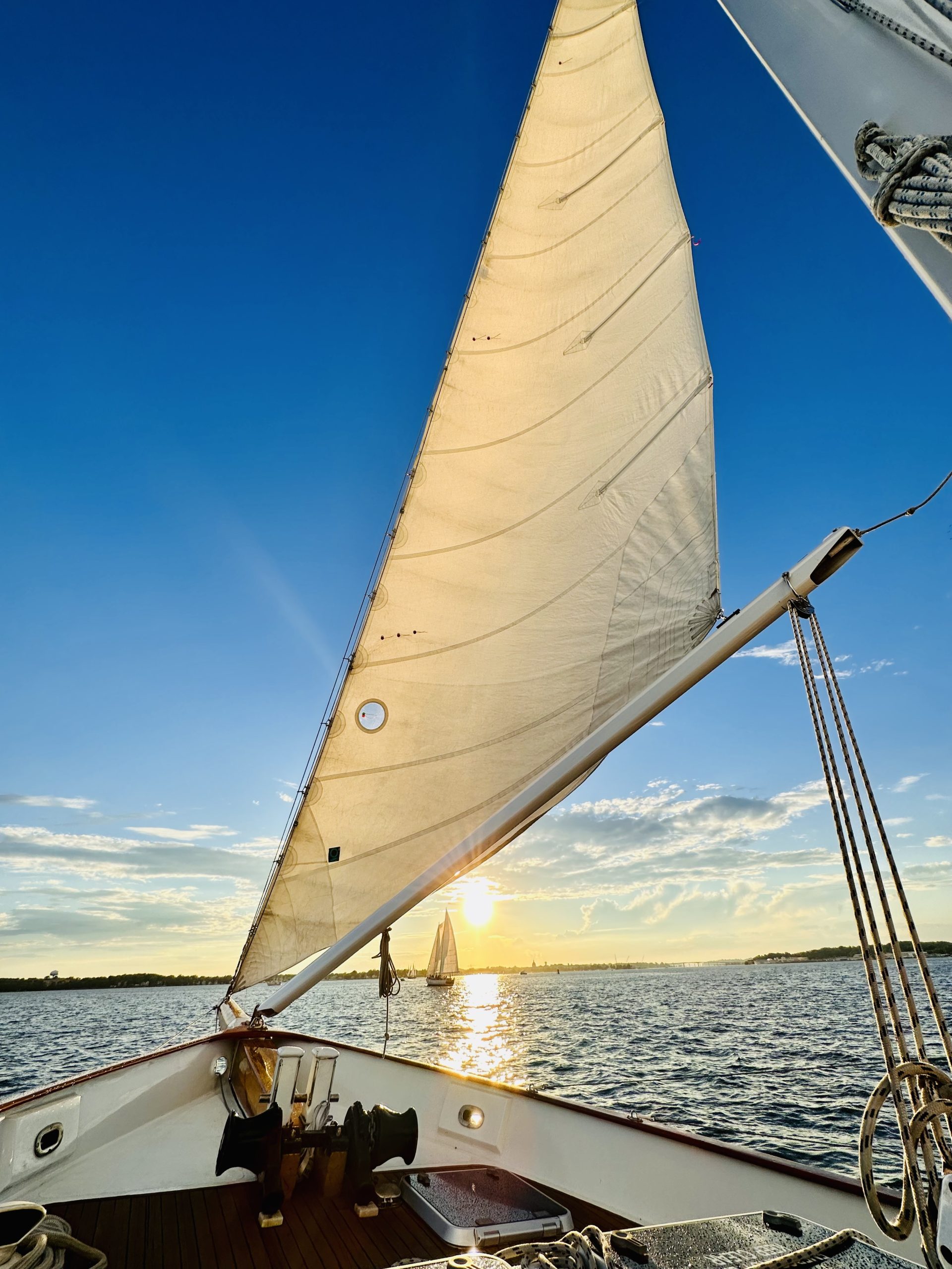 This phone includes the Jib of the Woodwind II with its sister ship with Woodwind sailing in front of the Annapolis sunset. Photo by Jennifer George of Crofton, MD