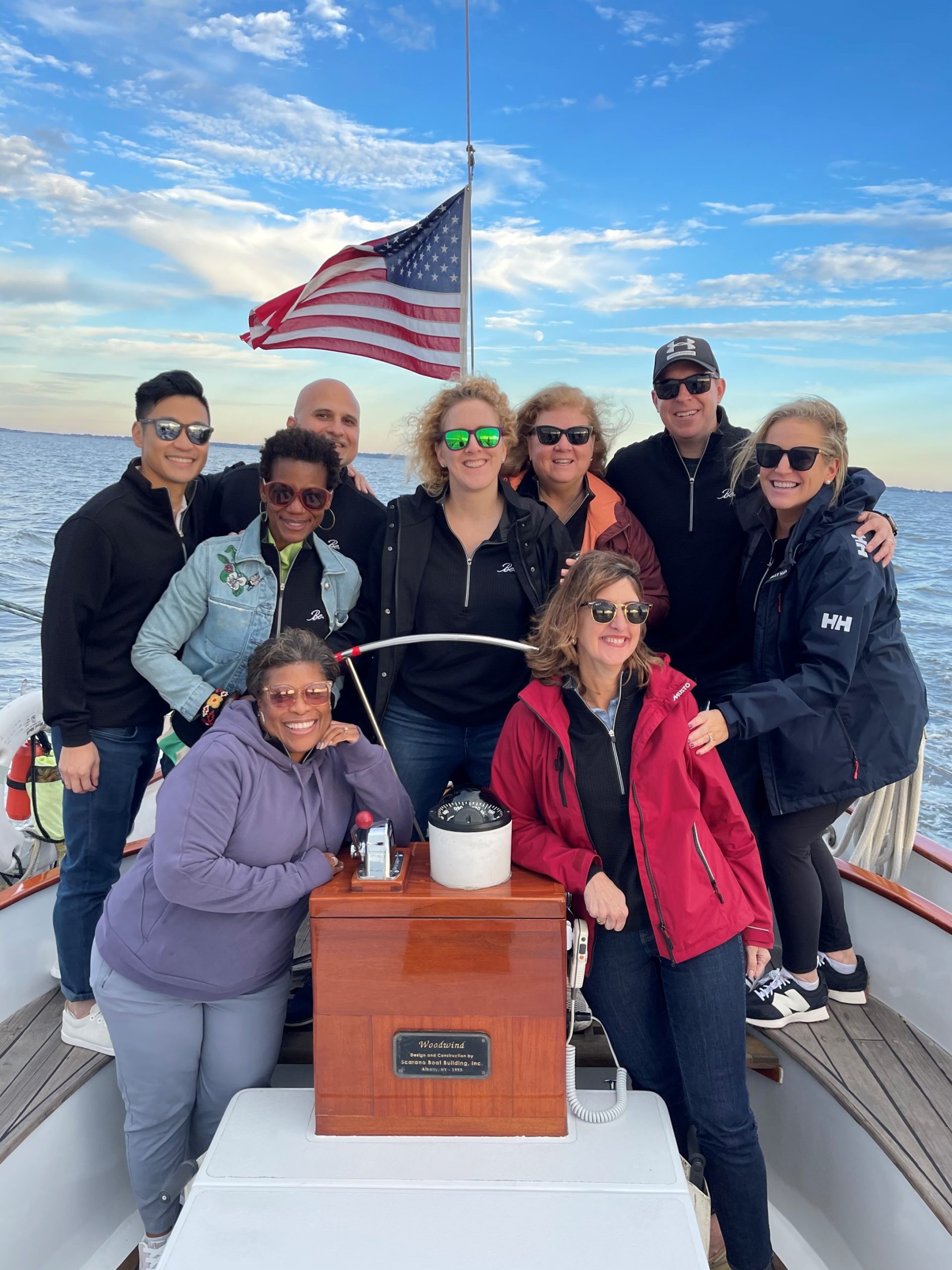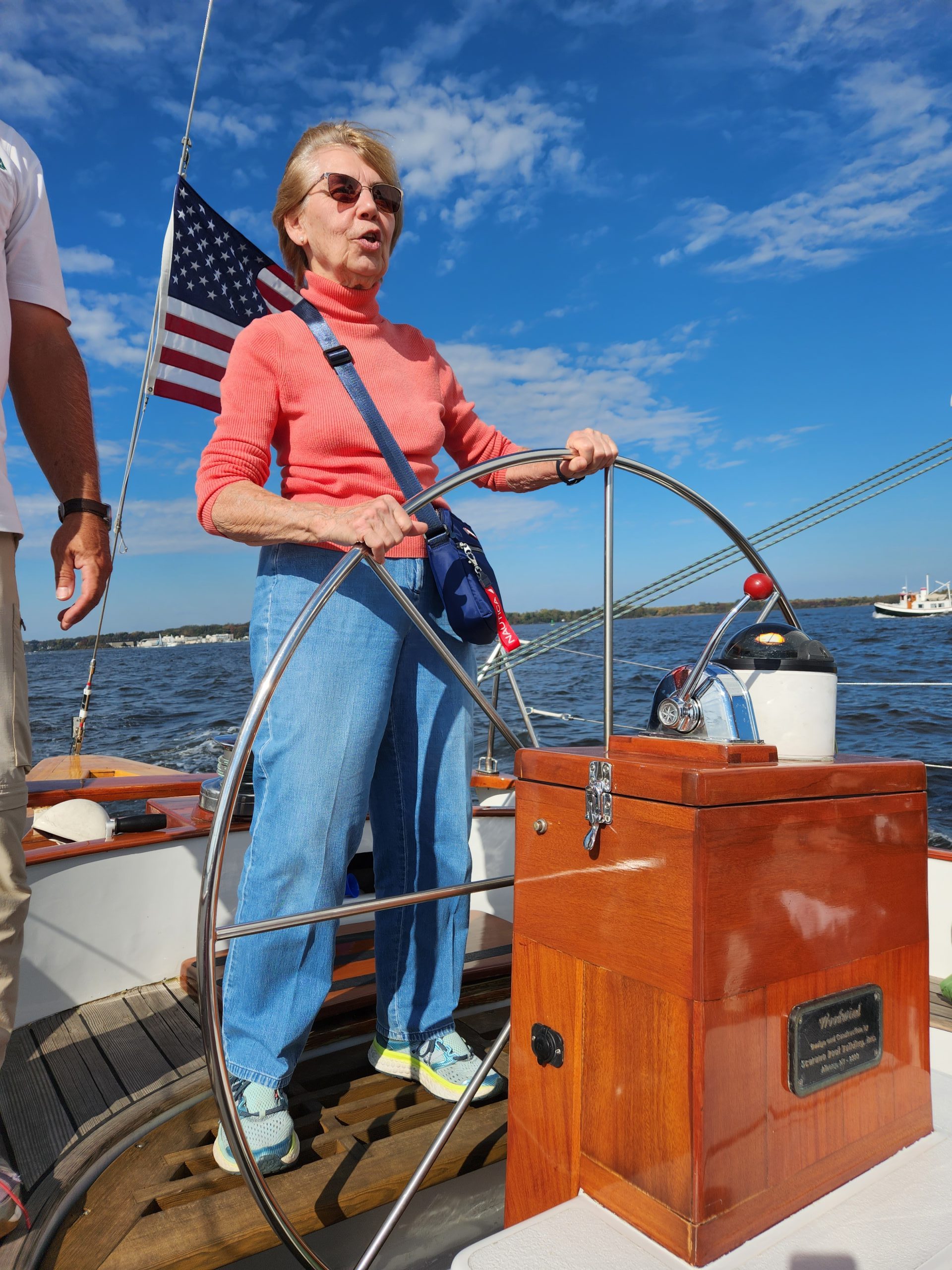 First time sailing on the final weekend of the 2023 season. Enjoying taking the helm! What an experience!!!!! Thank you, Captain Andy and the Crew!!!!! Photo by Stephanie Hahn of Columbia, Maryland