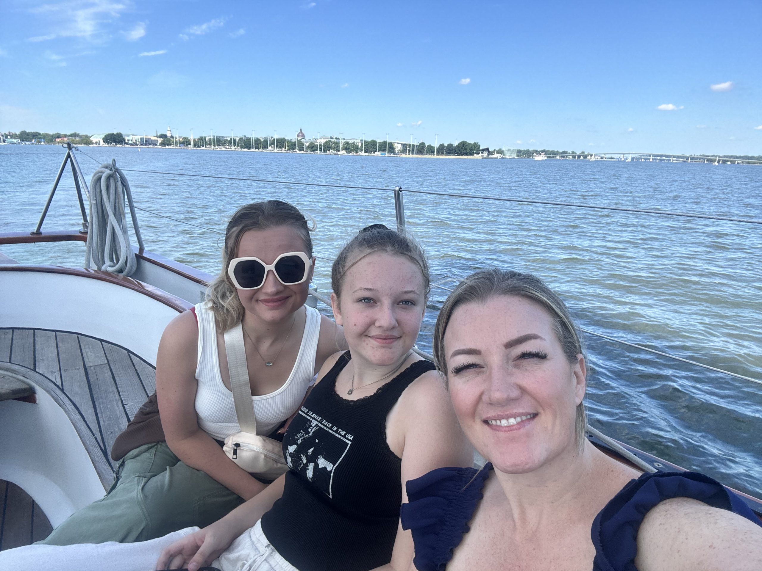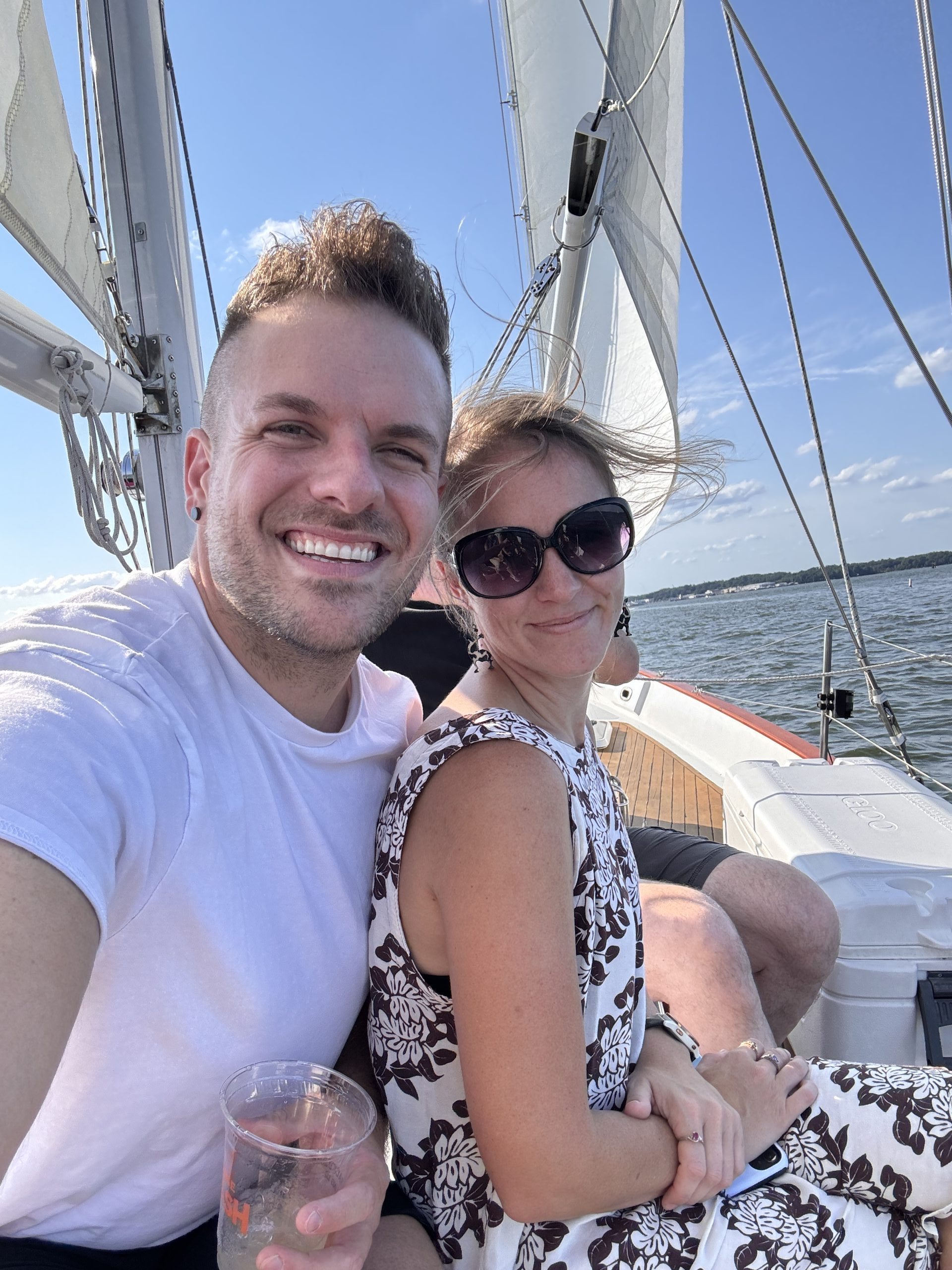 Some of the wedding crew from Carley and Demetri’s wedding went sailing with Captain Delaney and crew onboard the stunning Woodwind on Sunday, August 11th⛵️🥳! Photo by Carley Saster of Columbia, Maryland