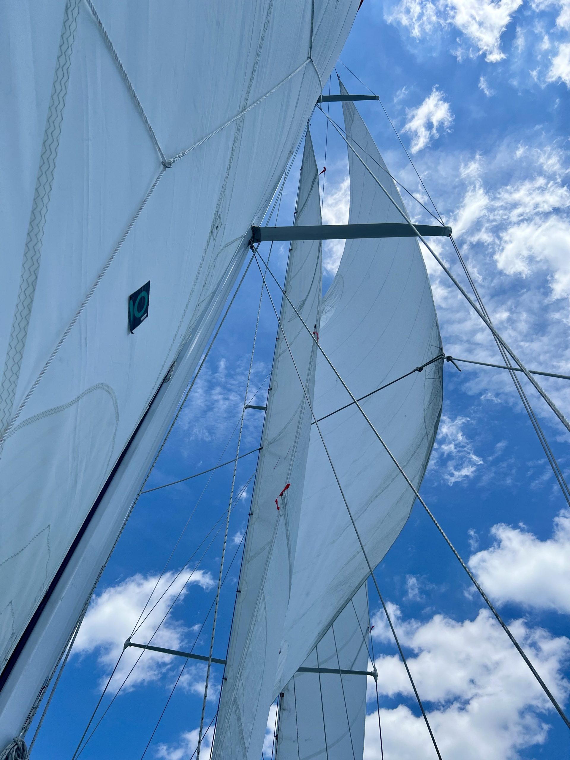 Gorgeous day on the bay Blue skies Wispy wave clouds Crisp white sails Photo by Christie Radomsky of Vienna, VA