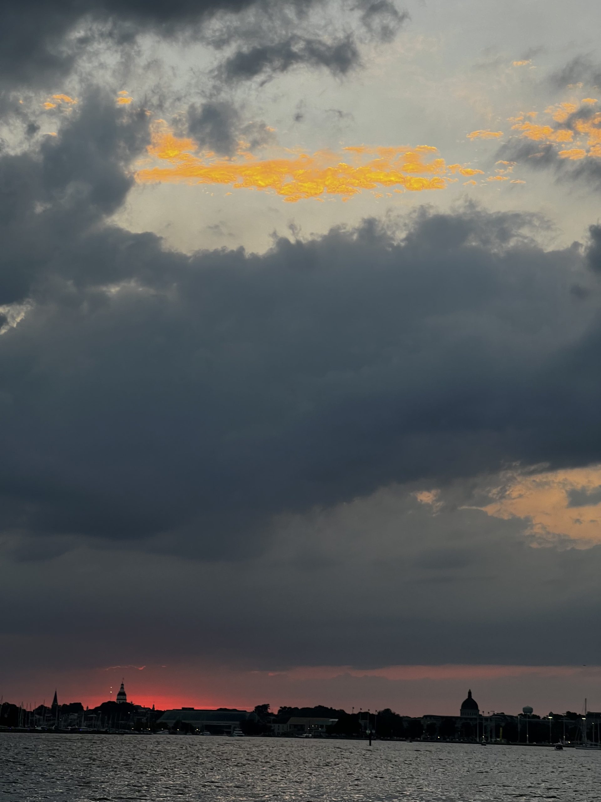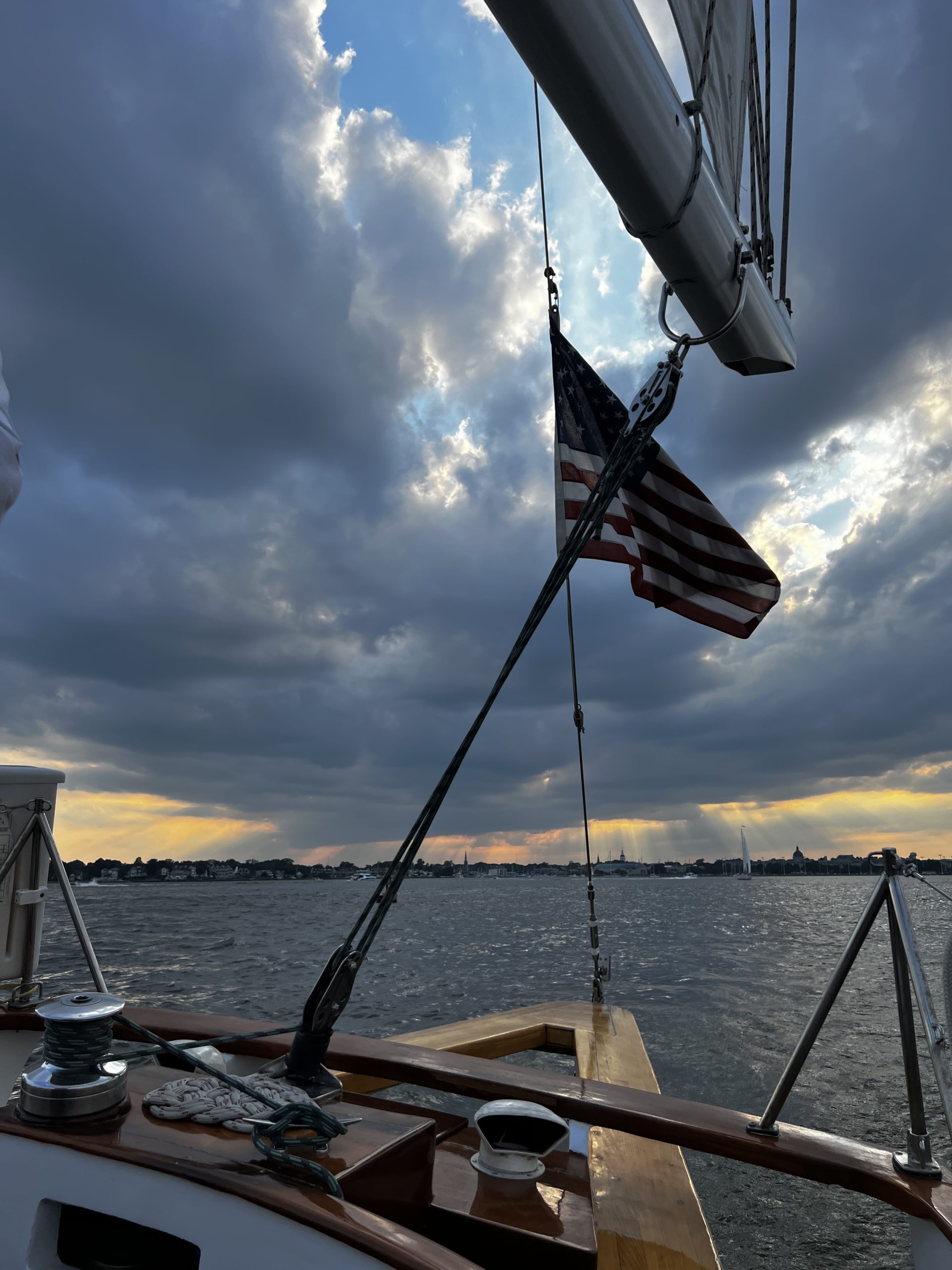 Watching the sunset over downtown Annapolis as we sail back to the dock. Photo by Jacy Kent of Annapolis, MD