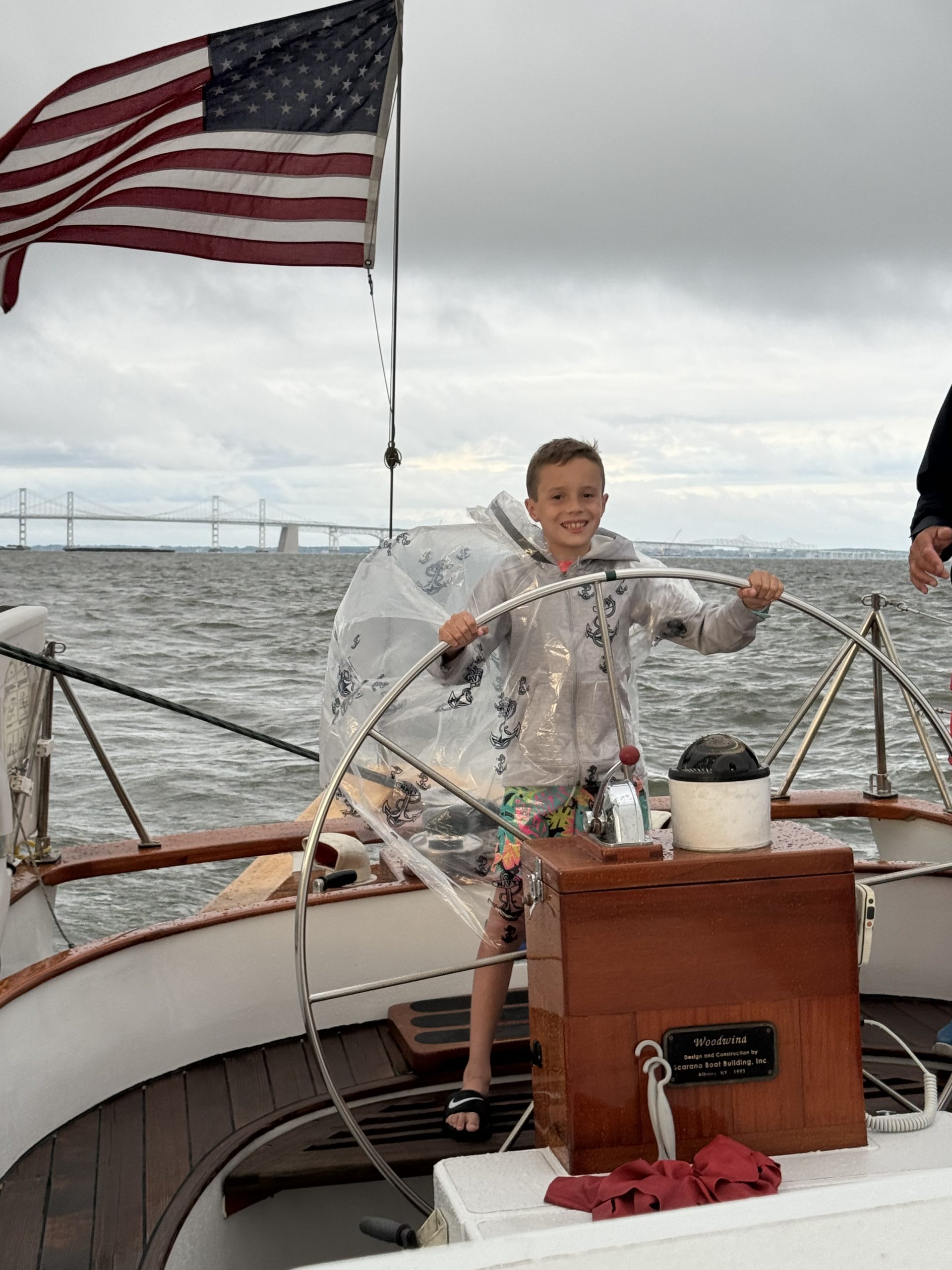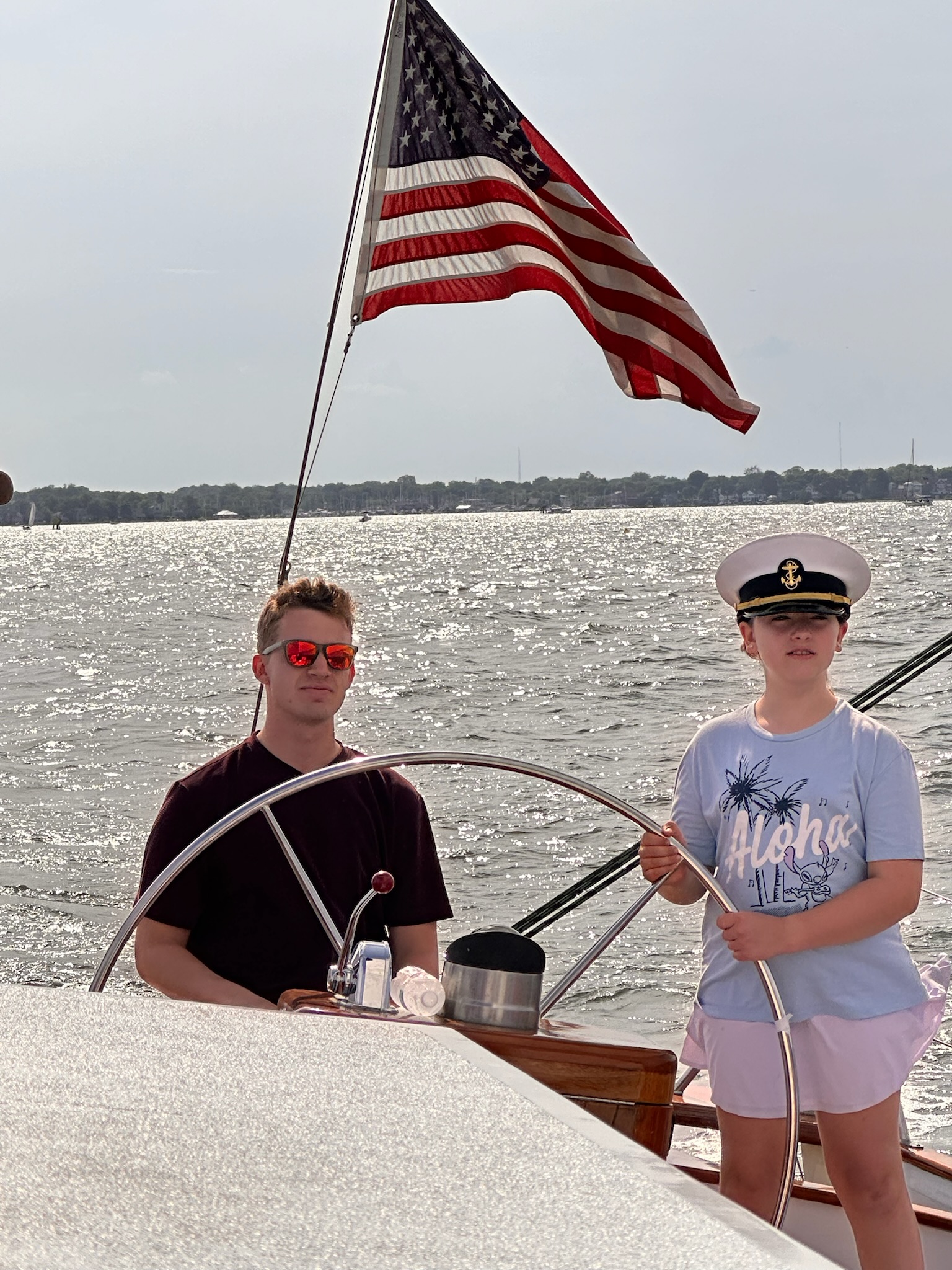 Happy place! Coaching his little cousin at the helm! Photo by Melissa Mason of Old Saybrook, CT