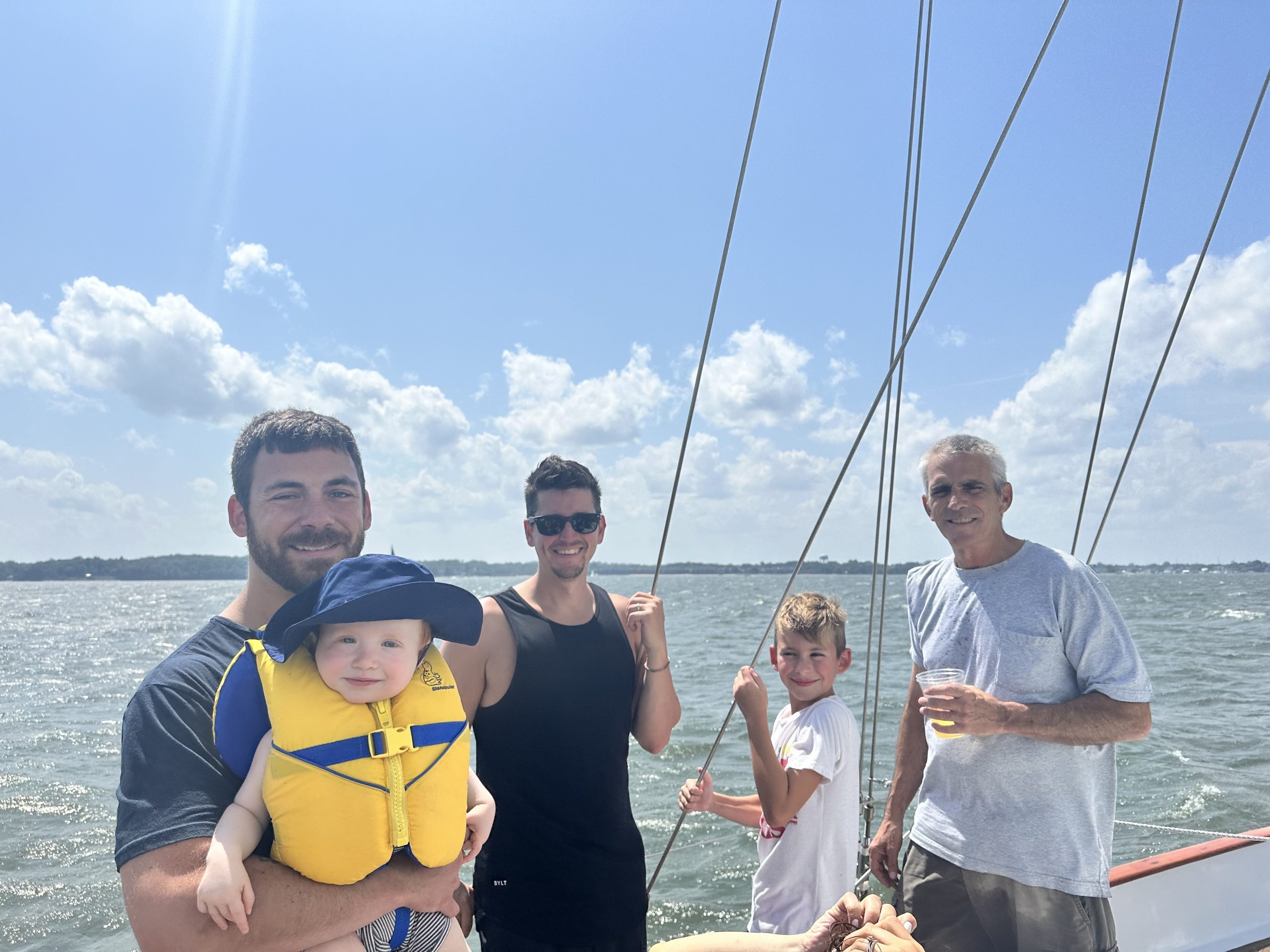 Baby’s first sail! We’ve been on many trips as a family and were inspired by the crew after our last sail 2 summers ago. So inspired we named our son Crew and he loved his first ride! Here’s 3 generations of boat lovers. Thanks again! Photo by Sam Harbage of Glen Burnie, Md