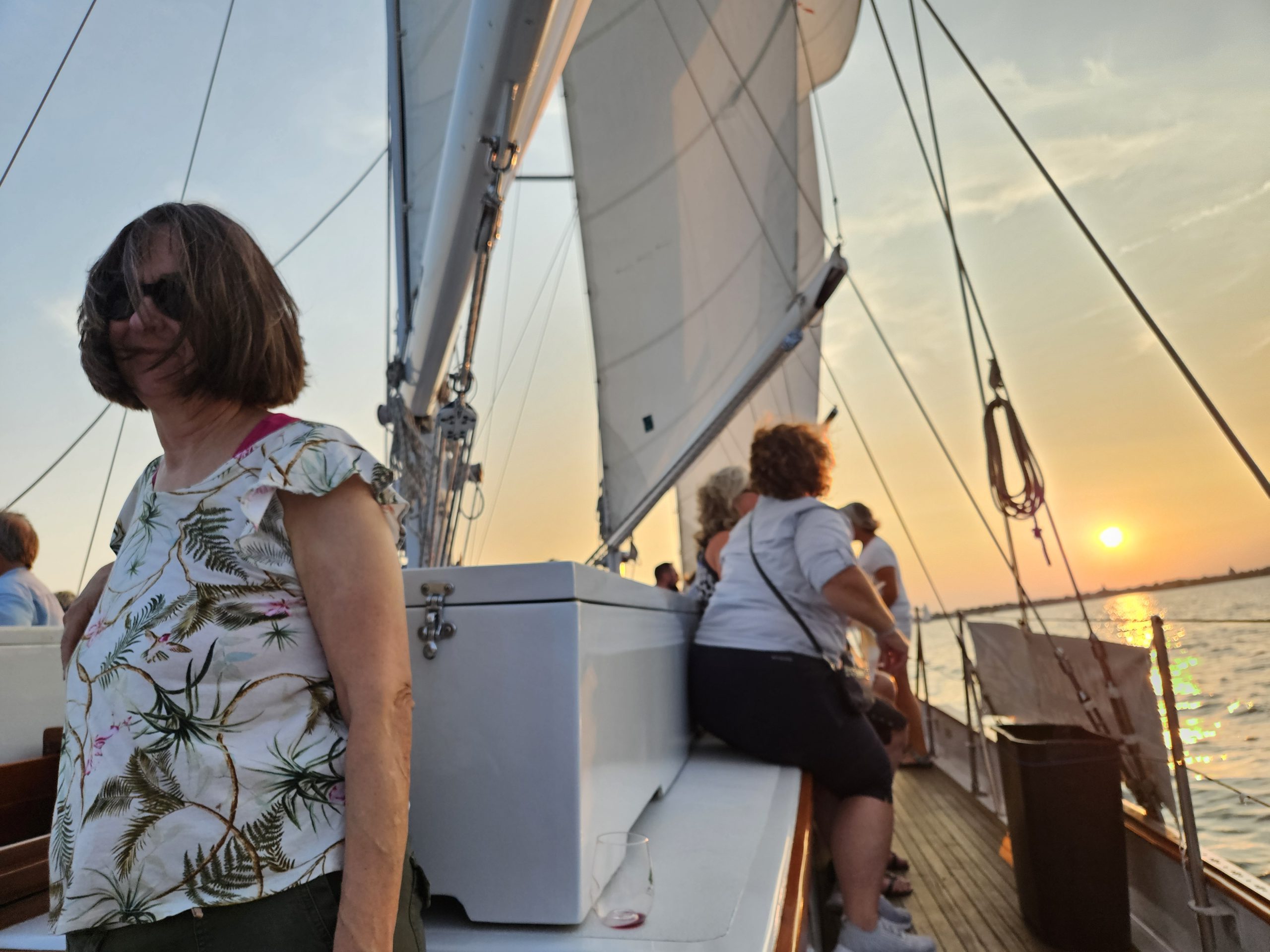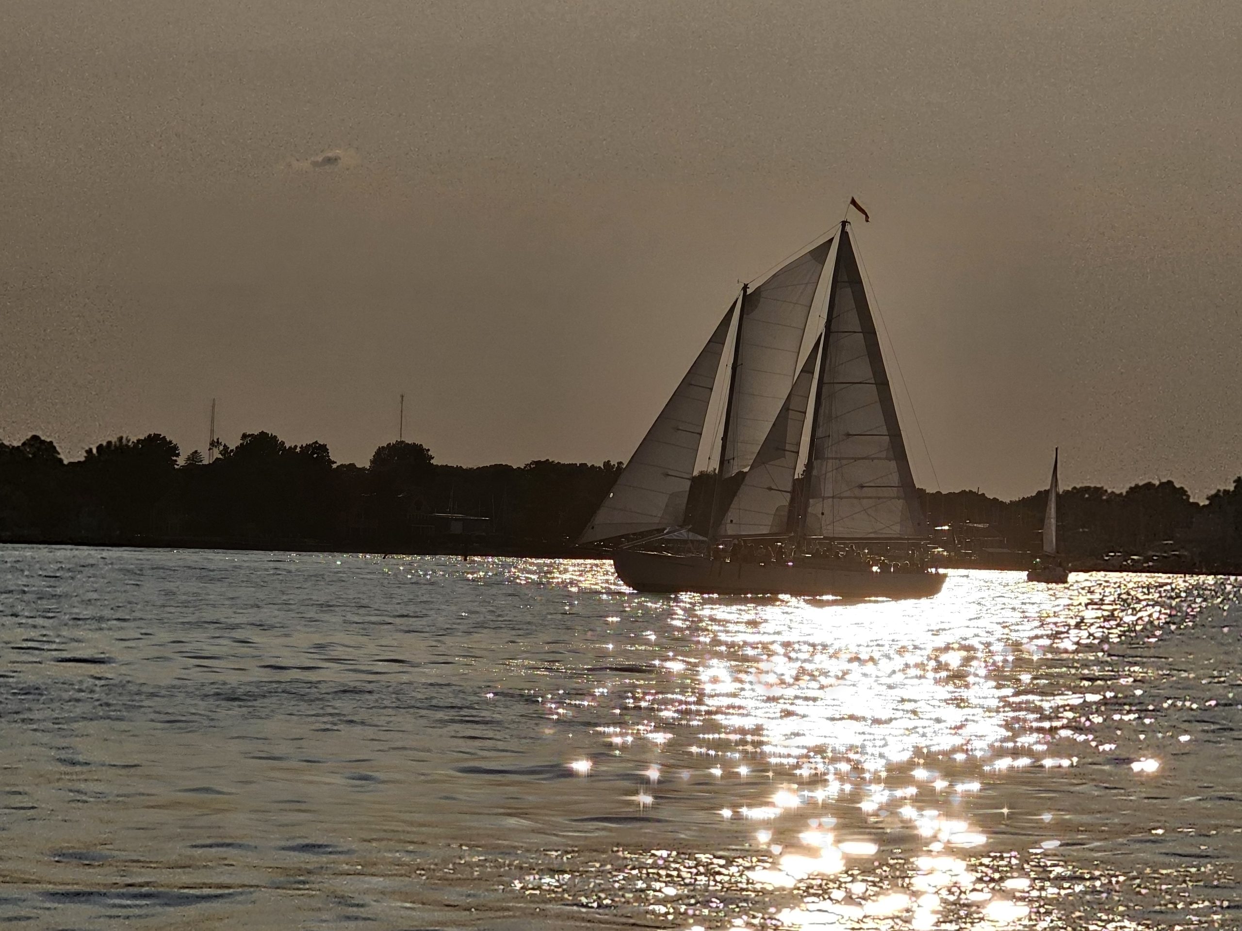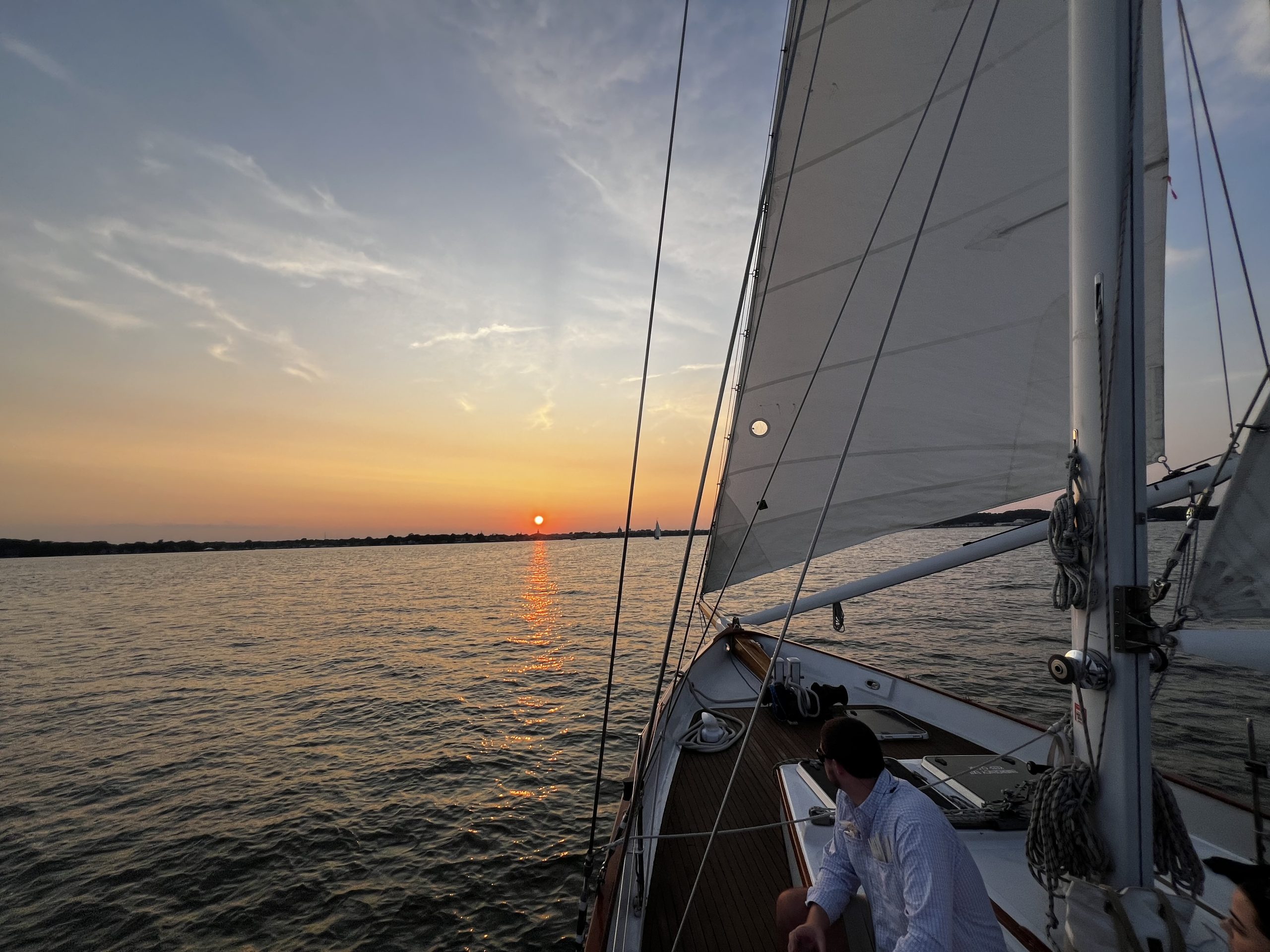 Sails and Sun Going Down. Sailing on the Schooner Woodwind in Annapolis, Md. July 2024 Photo by Samantha Scott Reiter of Monkton, Maryland