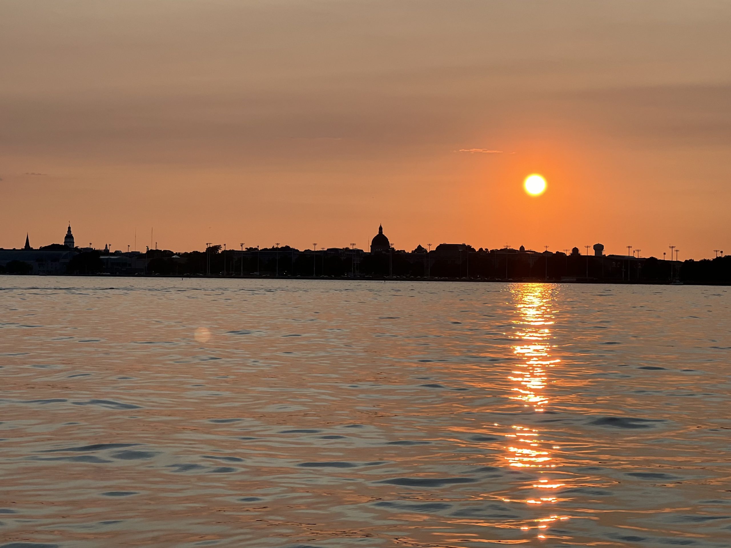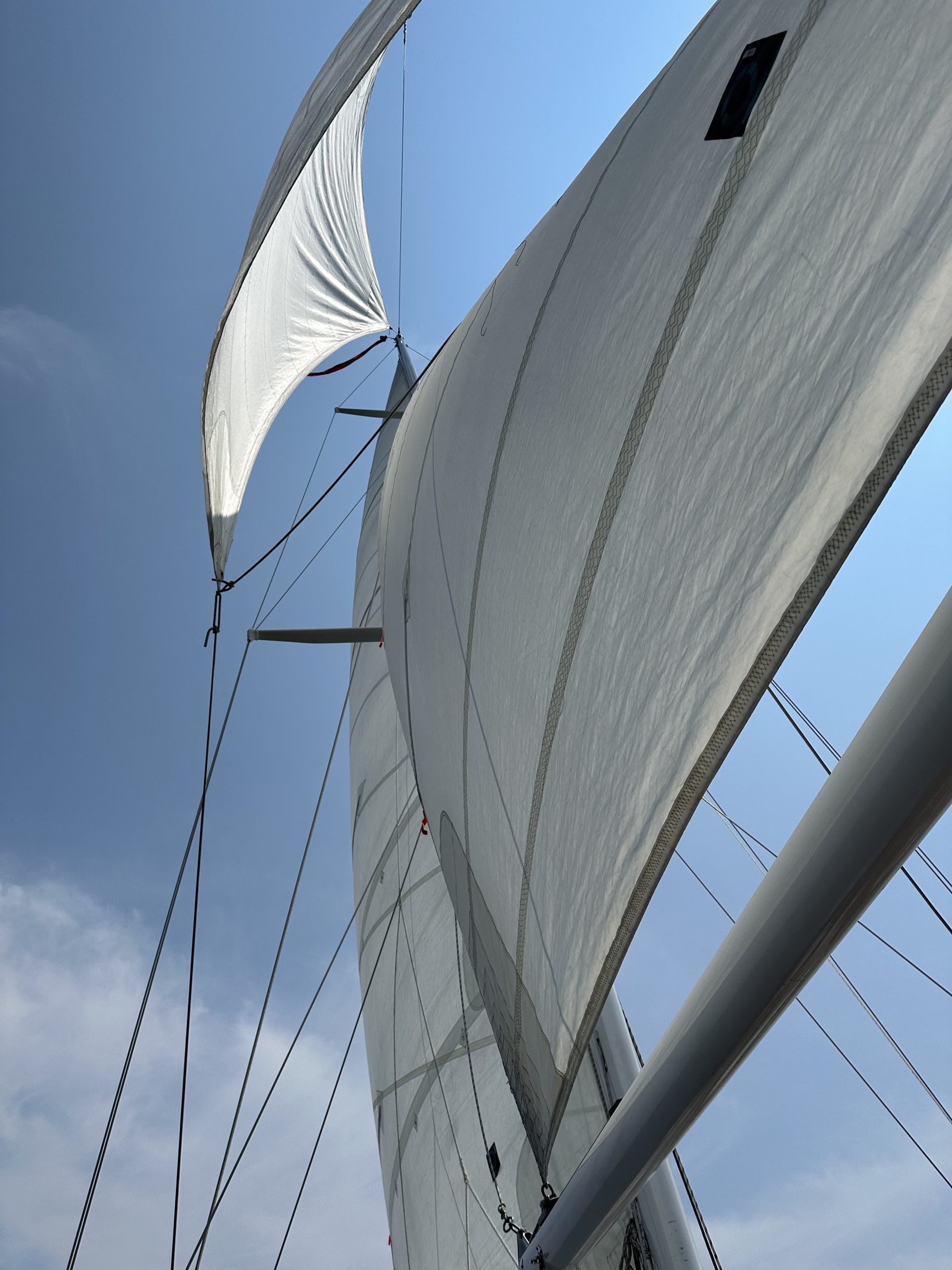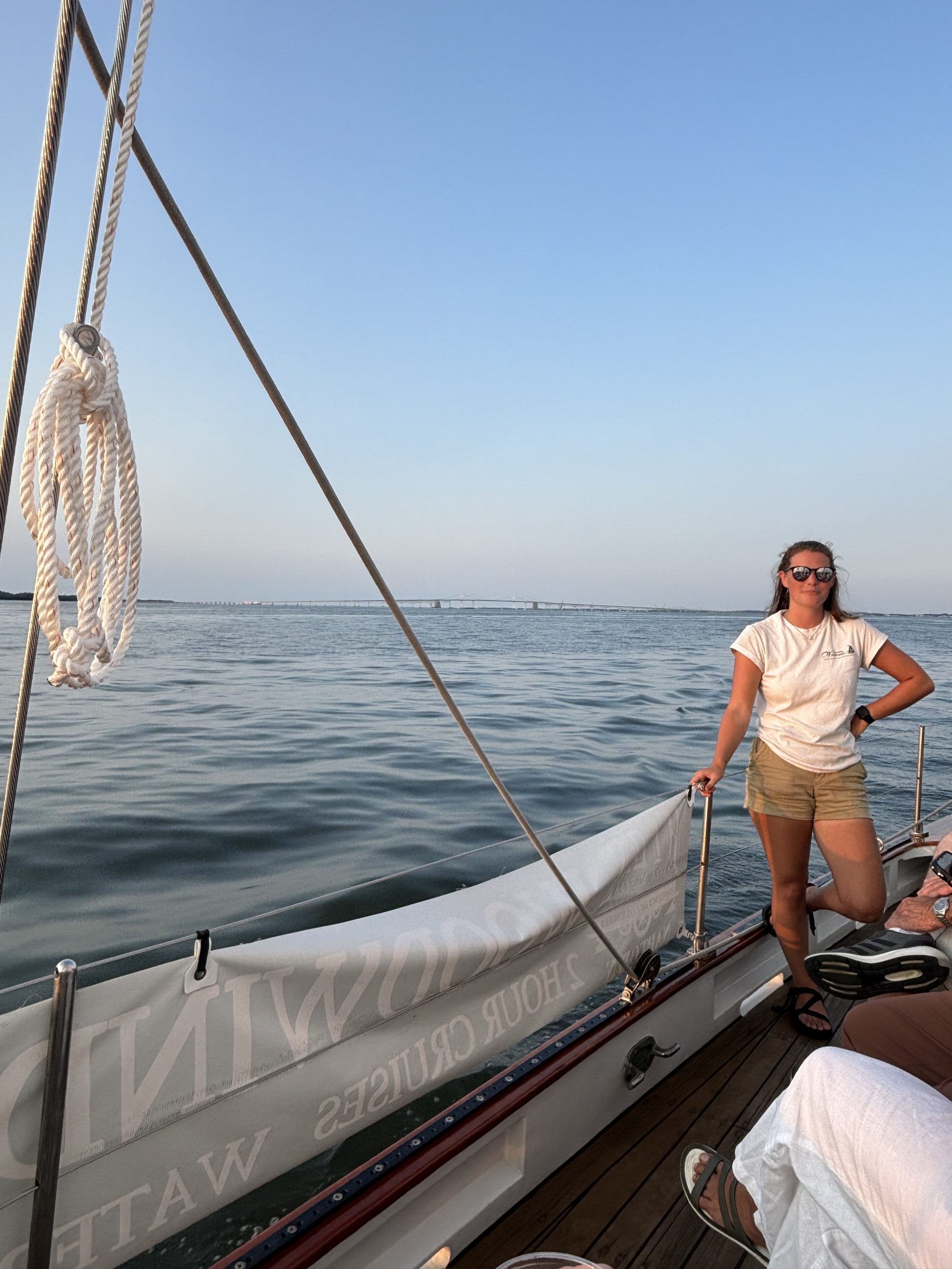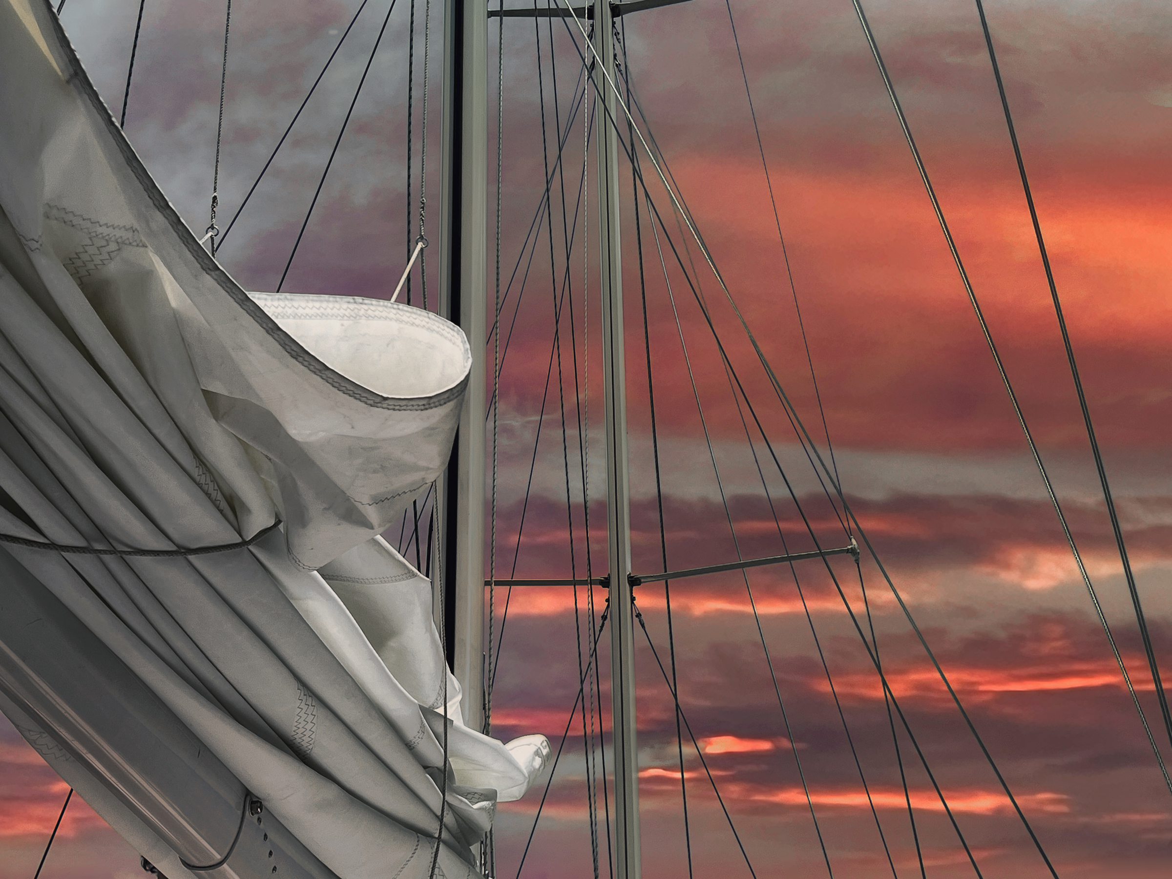 Sails and Sun Going Down. Sailing on the Schooner Woodwind in Annapolis, Md. July 2024 Photo by Samantha Scott Reiter of Monkton, Maryland