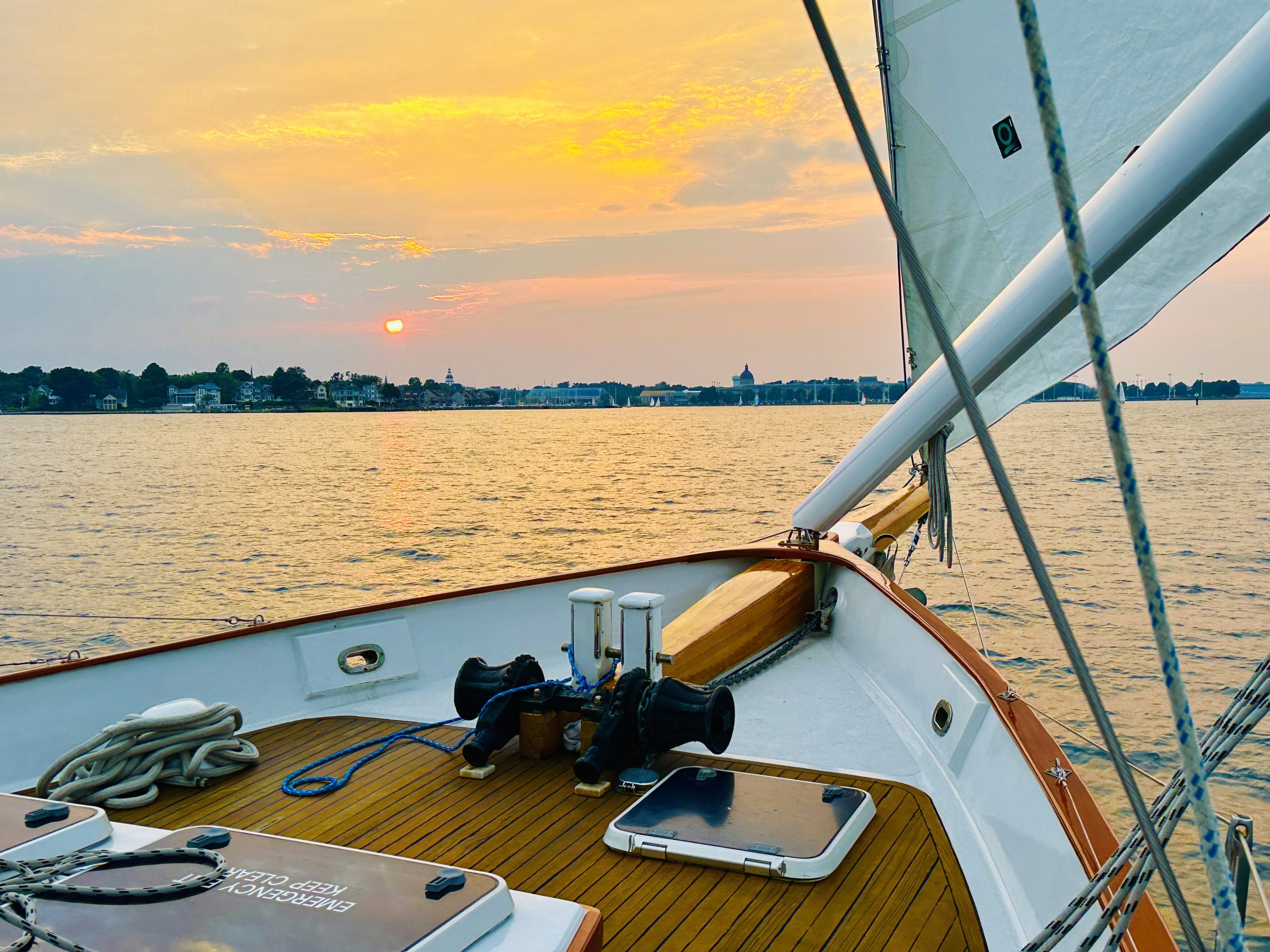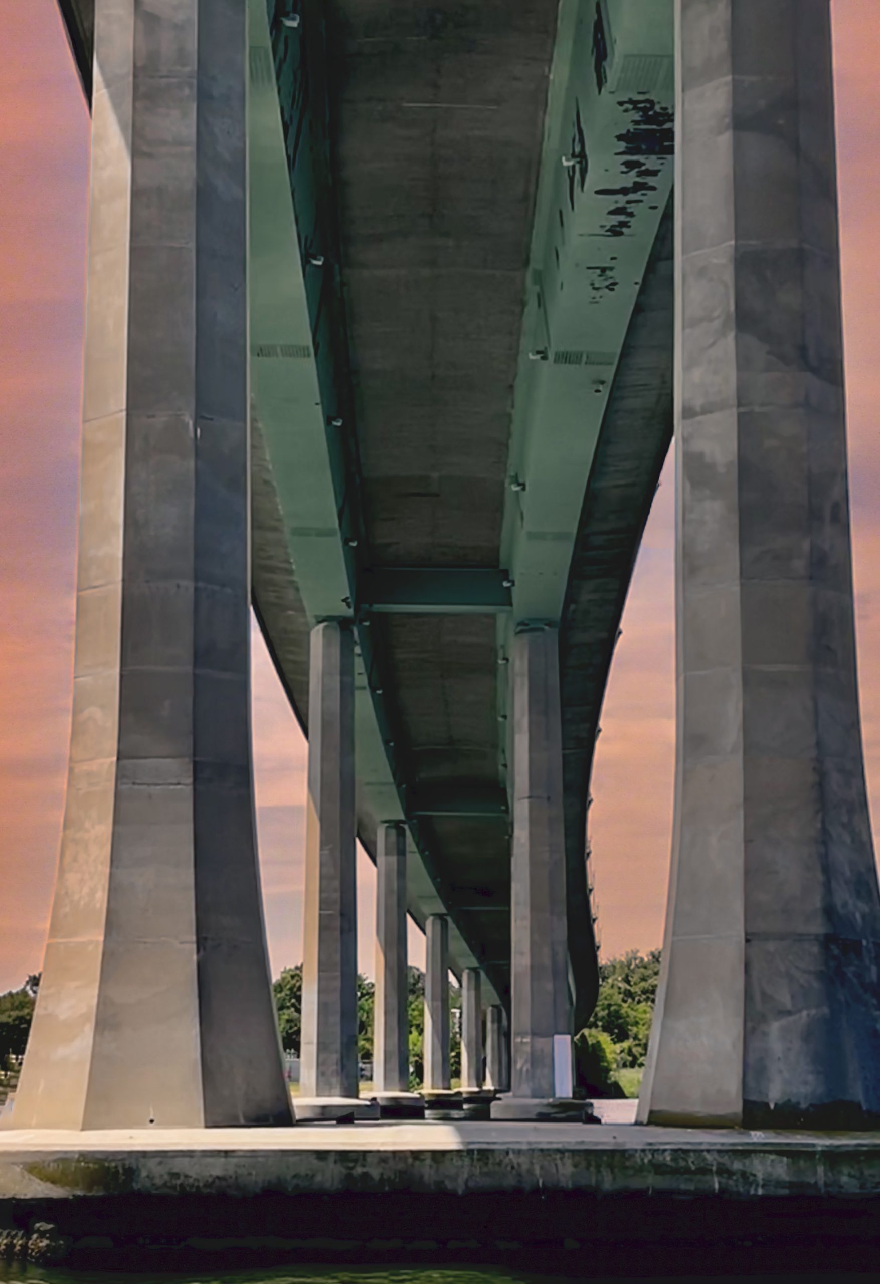 Under the Navel Academy Bridge at Sunset. Taken from the Woodwind Schooner in July 2024 Photo by Theodore George Renault Airey of Monkton, Maryland