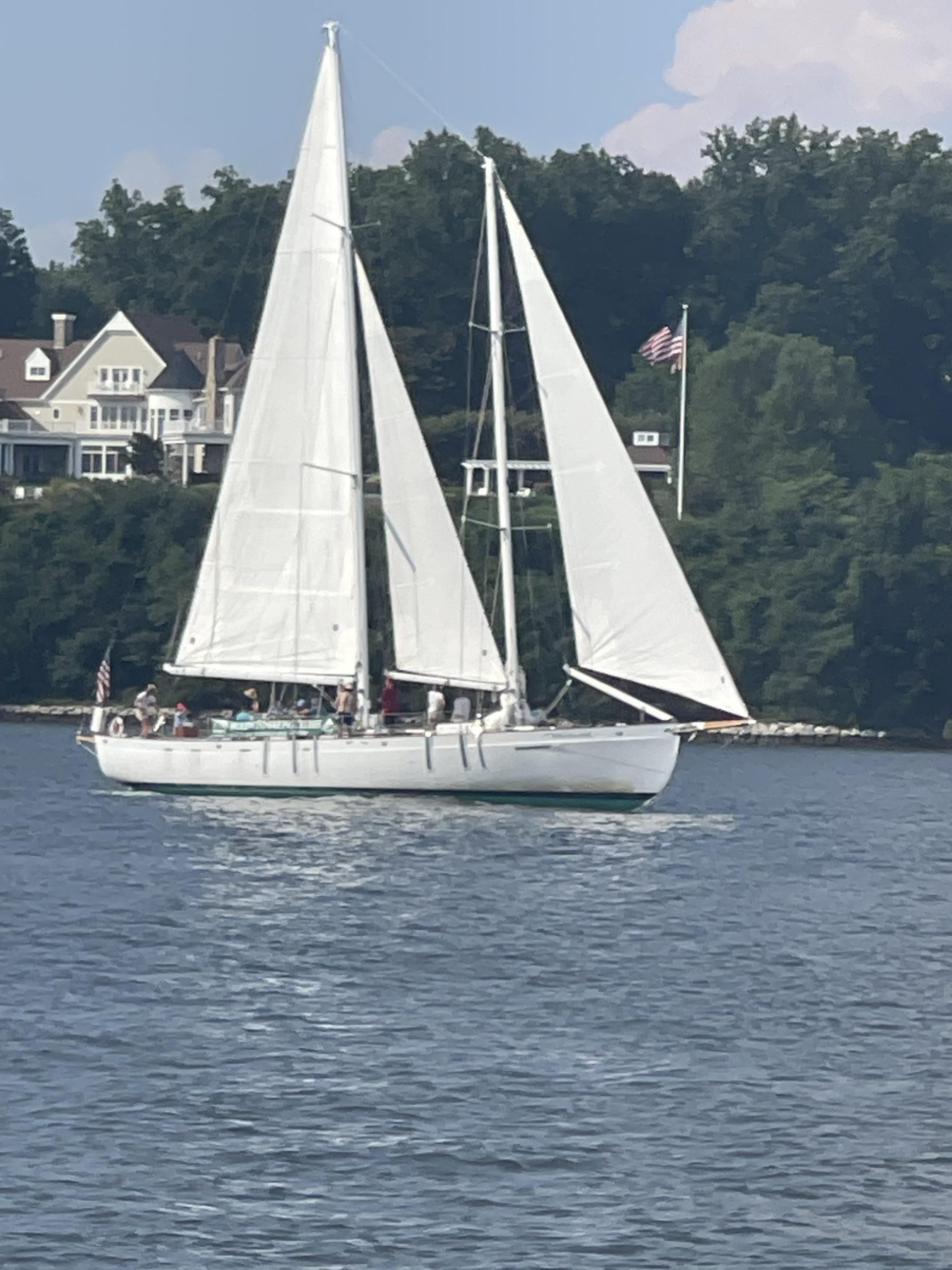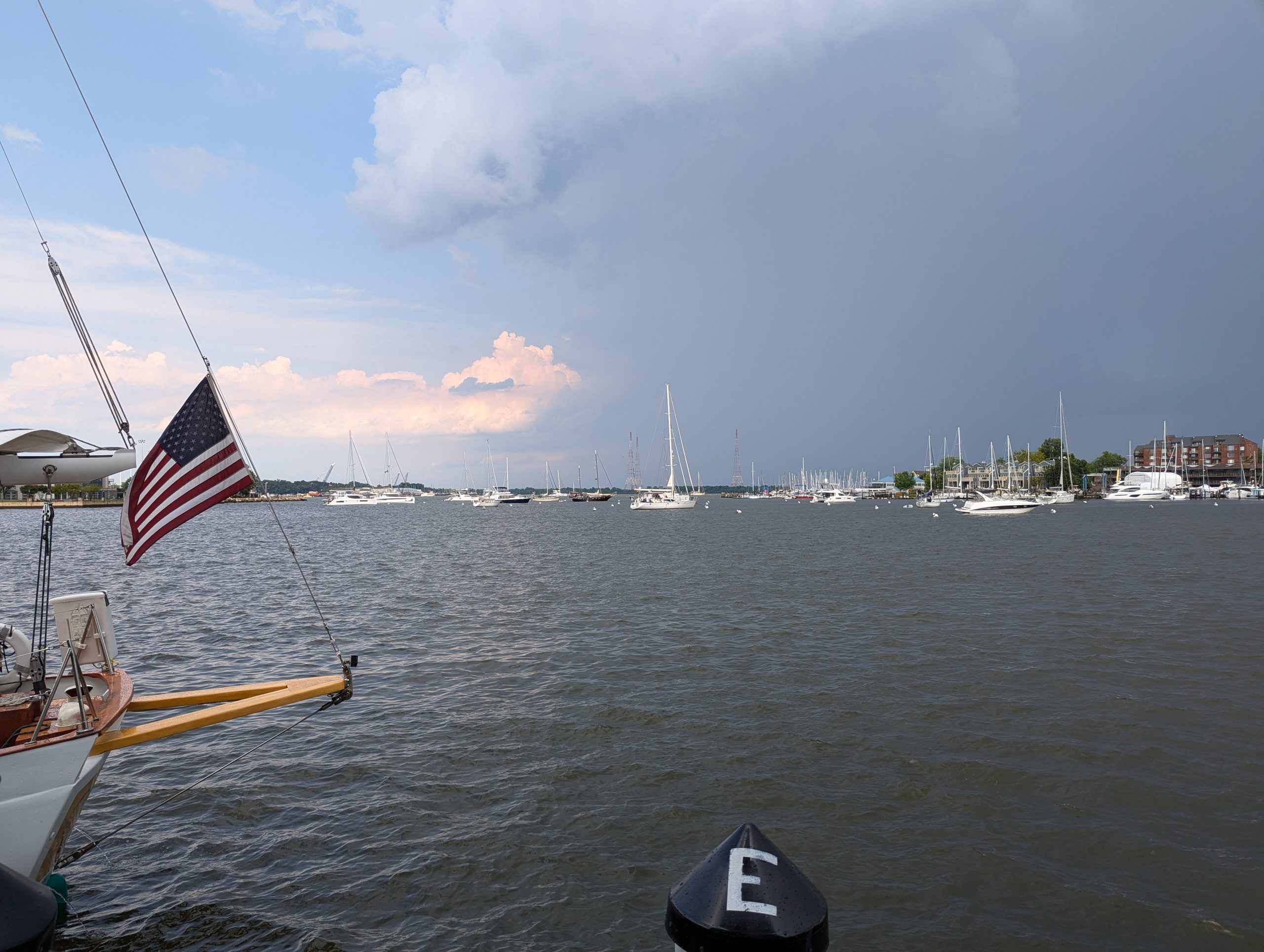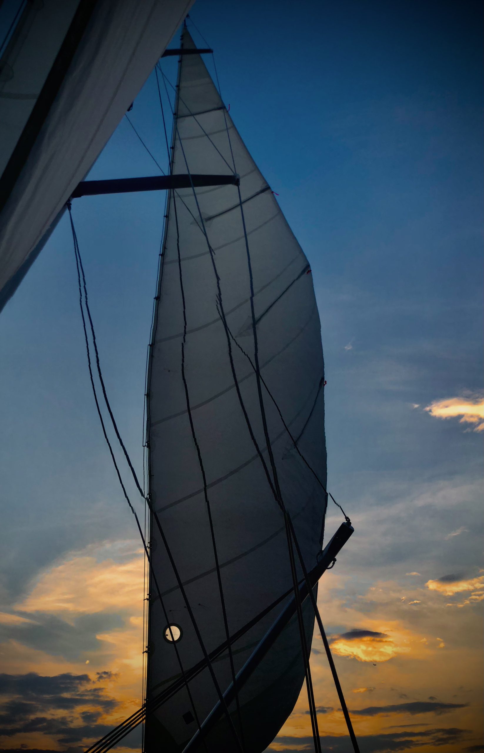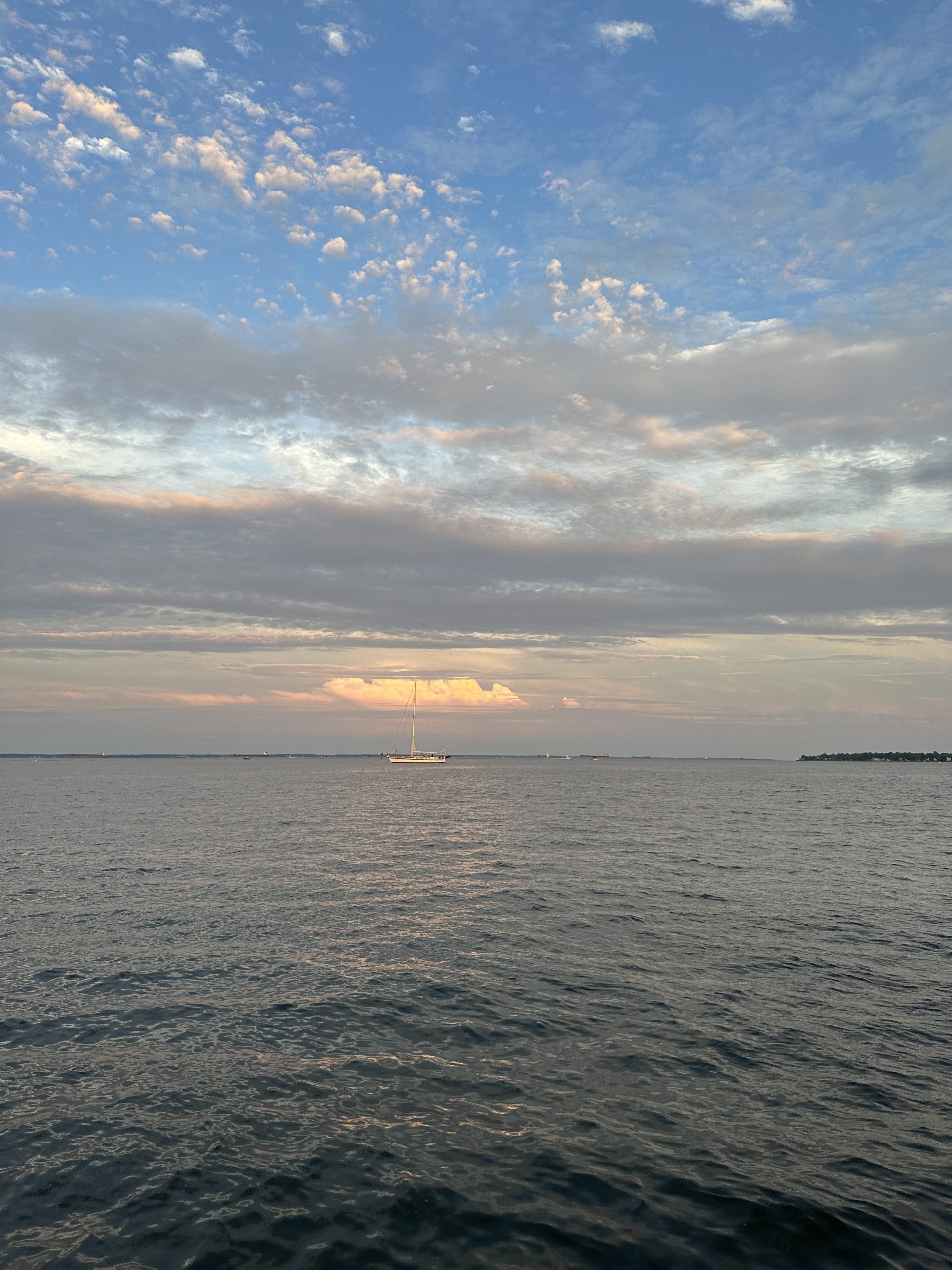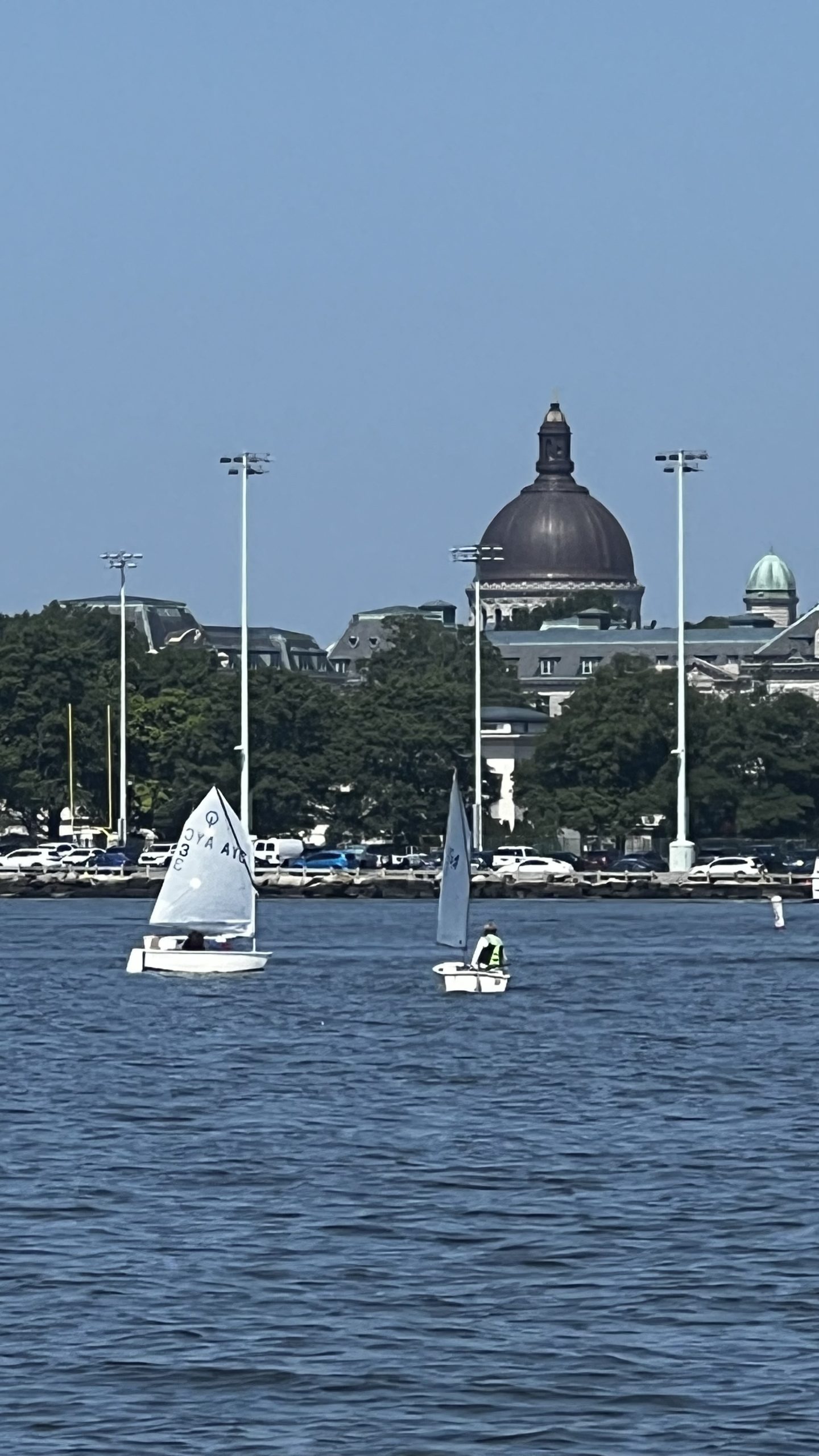 After a beautiful evening sail on July 18th aboard the Woodwind II, passengers were treated to a magnificent view featuring the fiery sun setting above the Naval Academy Chapel Dome. Photo by Susan Johnson of Annapolis, MD