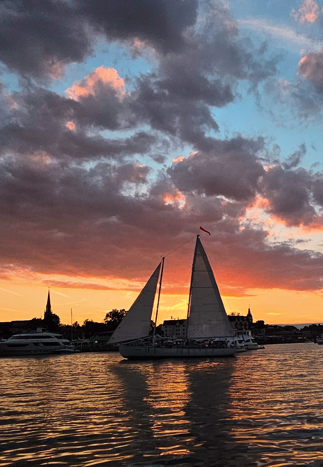 After a wonderful time aboard earlier that day, we got to see her from shore at sunset as we celebrated our anniversary at the Charthouse. Photo by Jordan Engel of Chevy Chase, MD