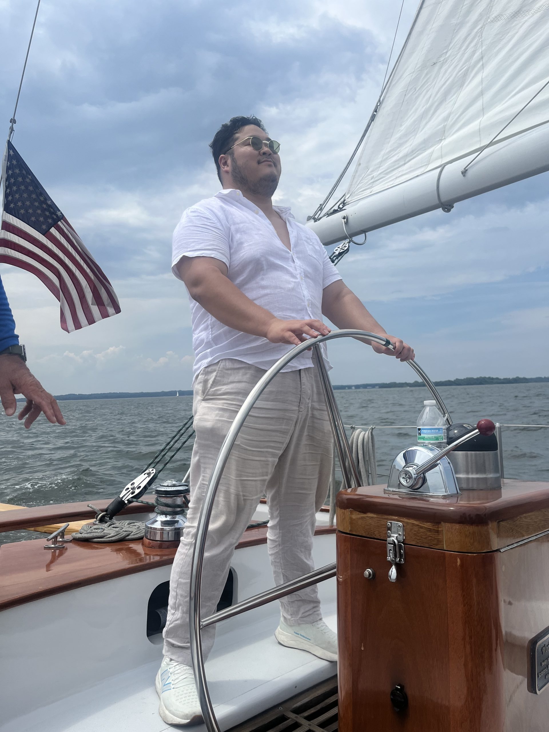 Captain Yang cruising the sea on July 4th and cursing like a sailor. Photo by Hyun Lee of Tysons, Virginia