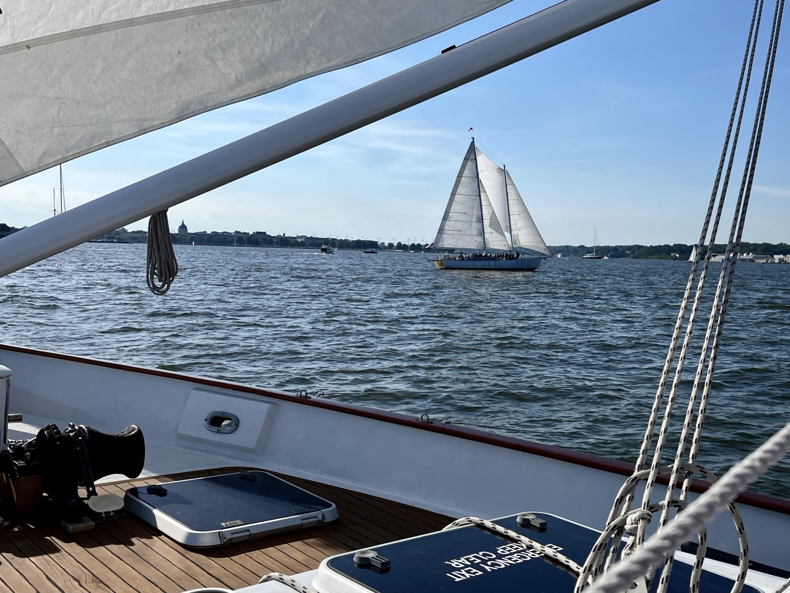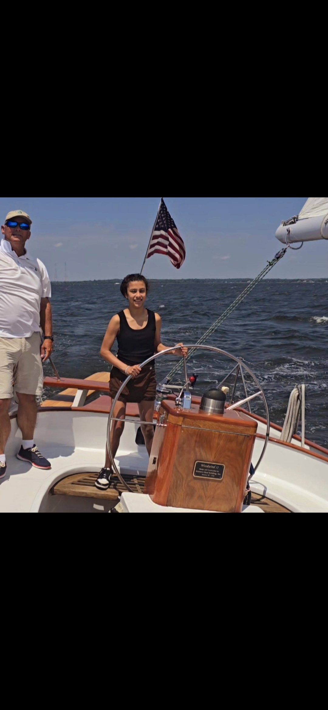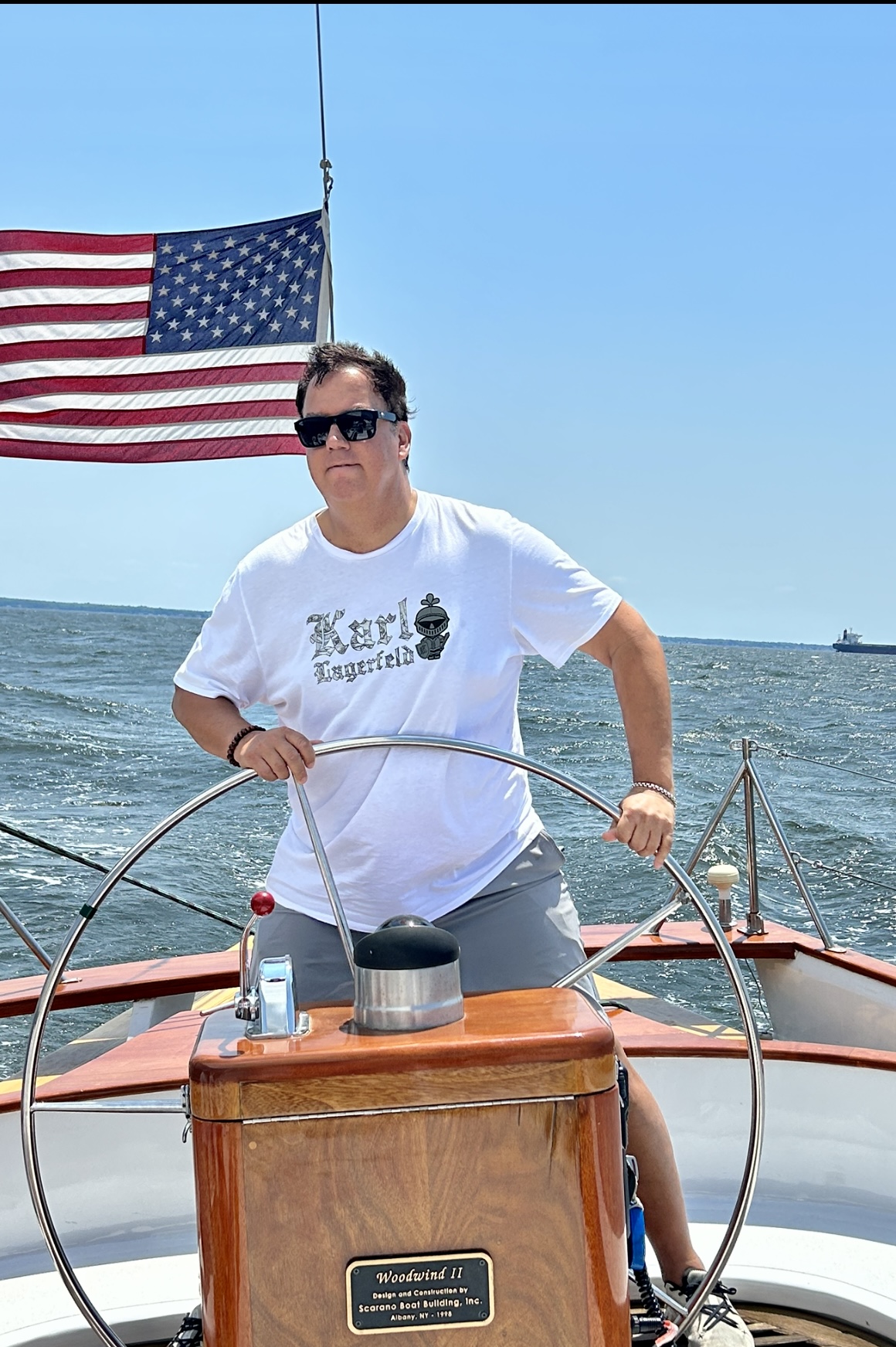First time on a sail boat and the captain let’s me take the wheel.. This is my life.. Photo by Jacqueline Courbois of Bethesda, Maryland