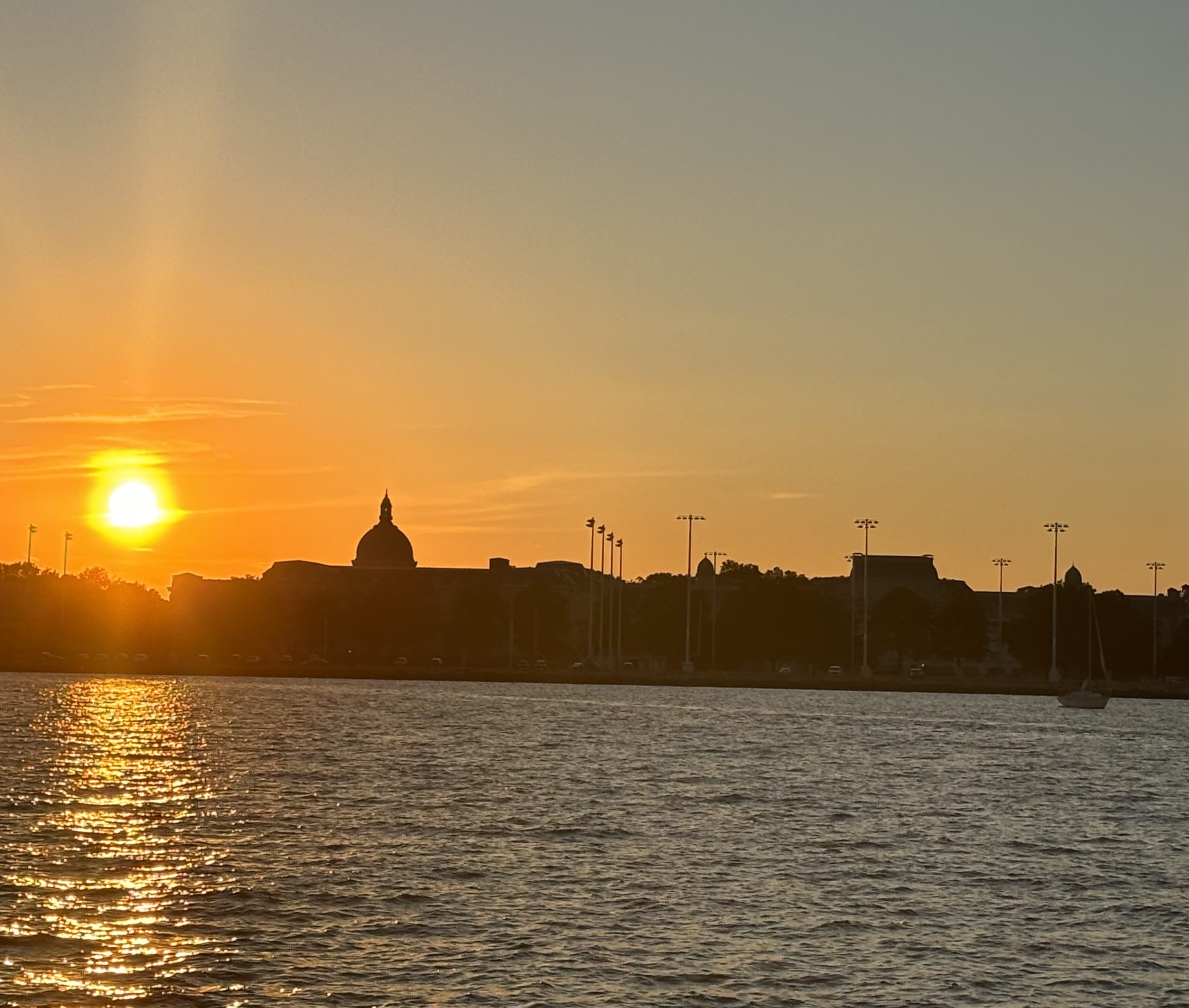 Picture of a sunset over the USNA chapel Photo by Grace Keltner of Belton, Missouri