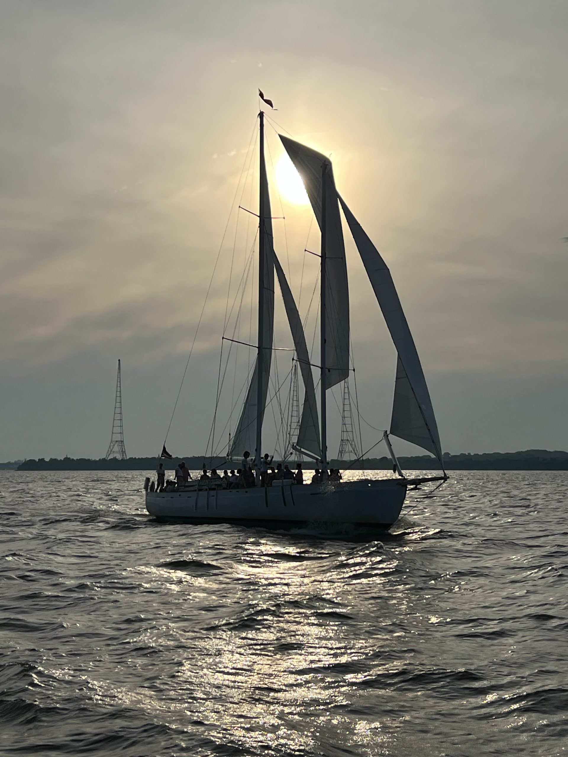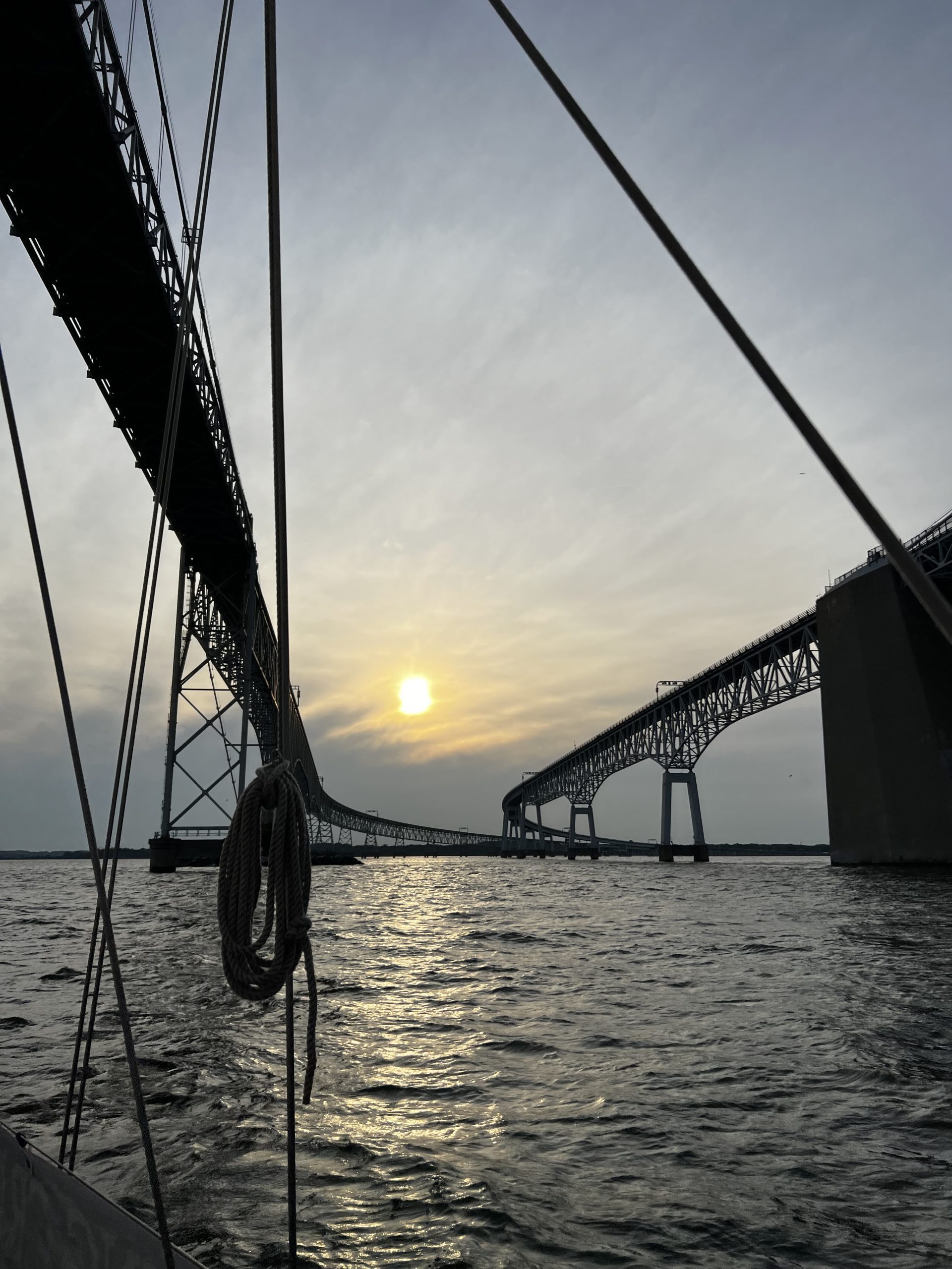 Sailing between the 2 bridges at sunset Photo by Tammy Ditto of Greenfield, IN