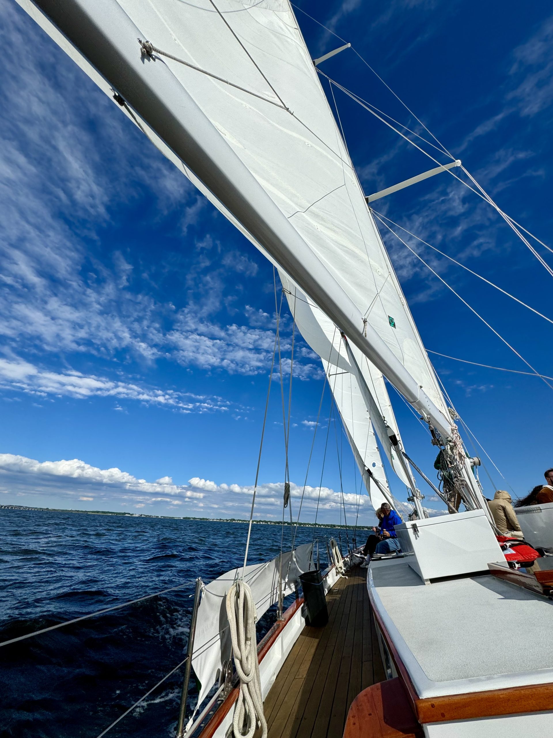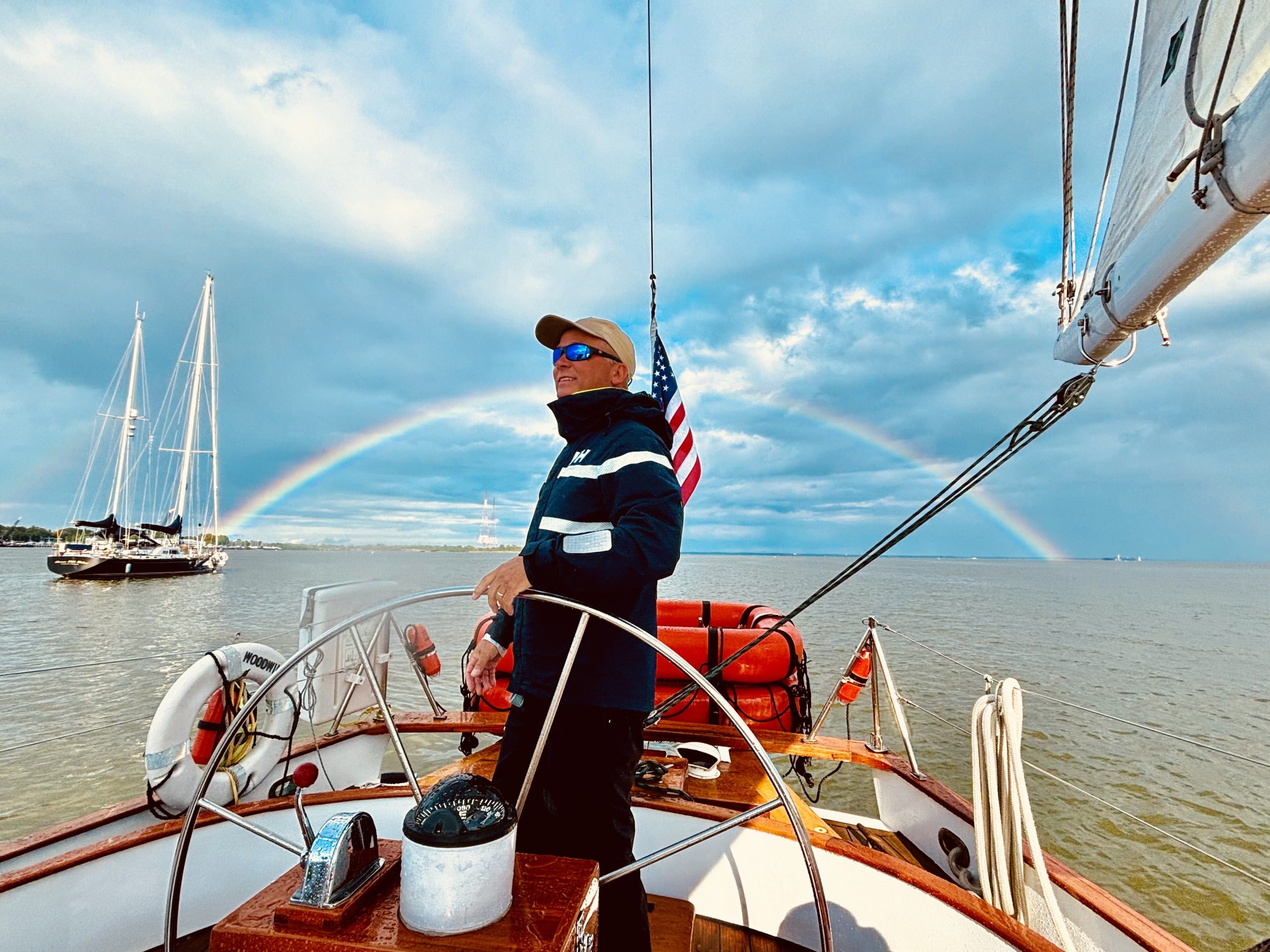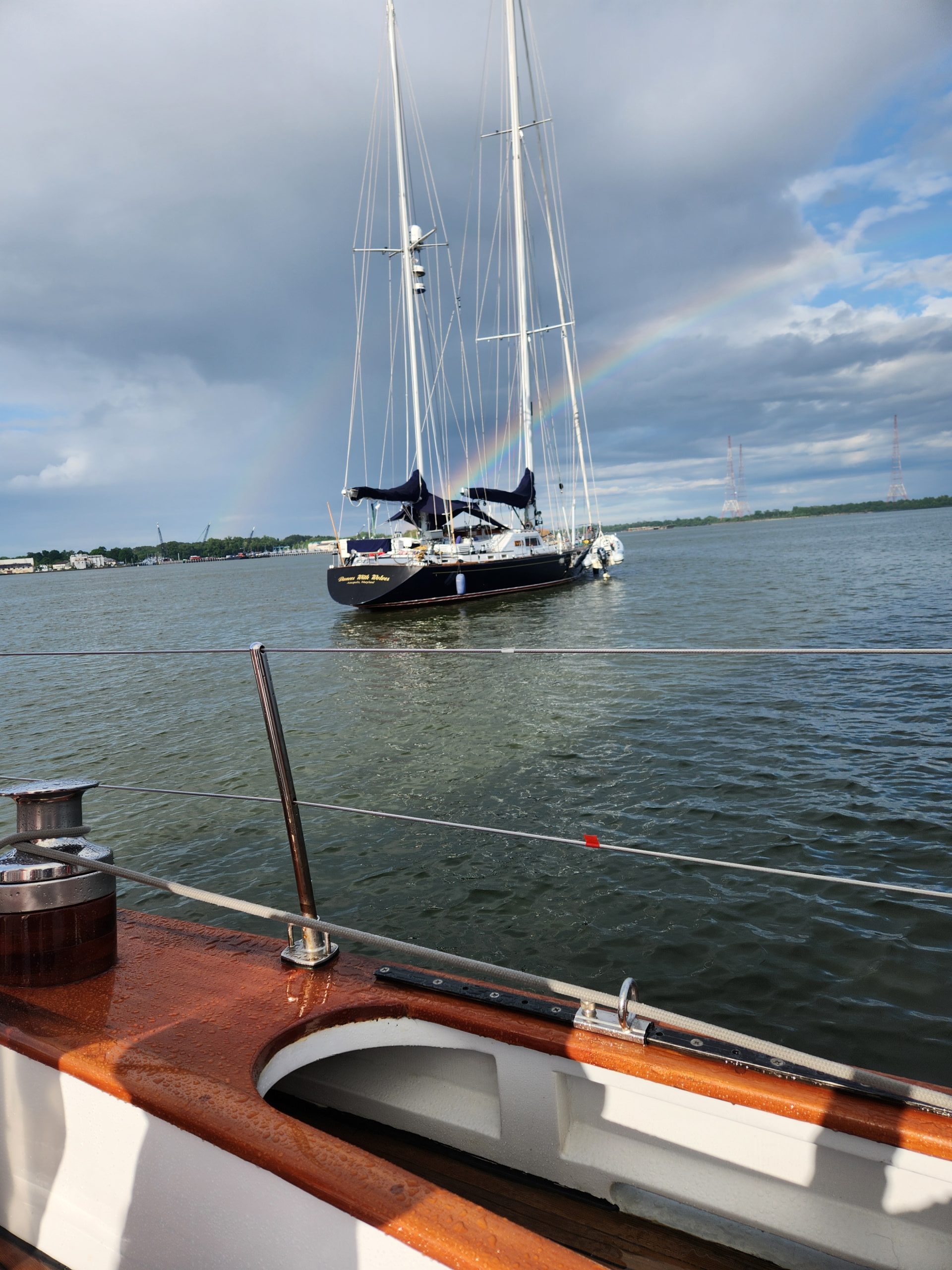 5/12/24, Mother’s Day 4pm sail, saw so many rainbows! On water’s surface, doubles, clouds to blue skies. A wonderful time! Photo by Judy Byrd of New Market, MD