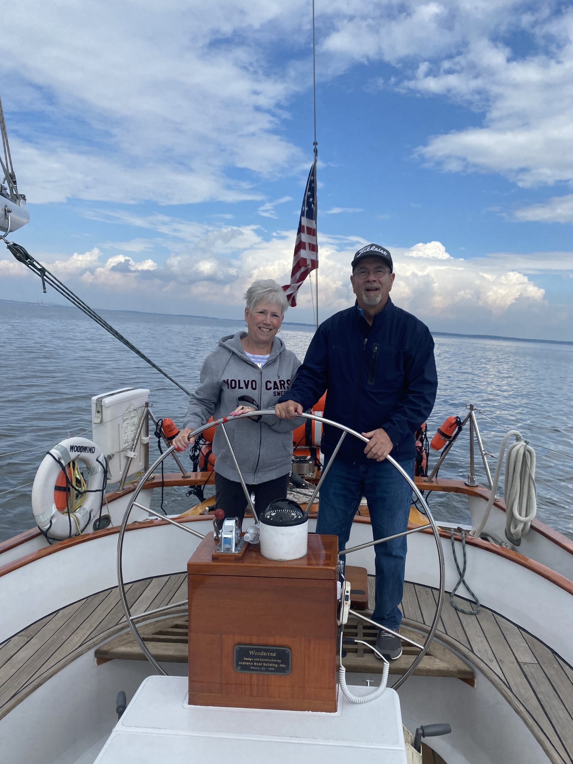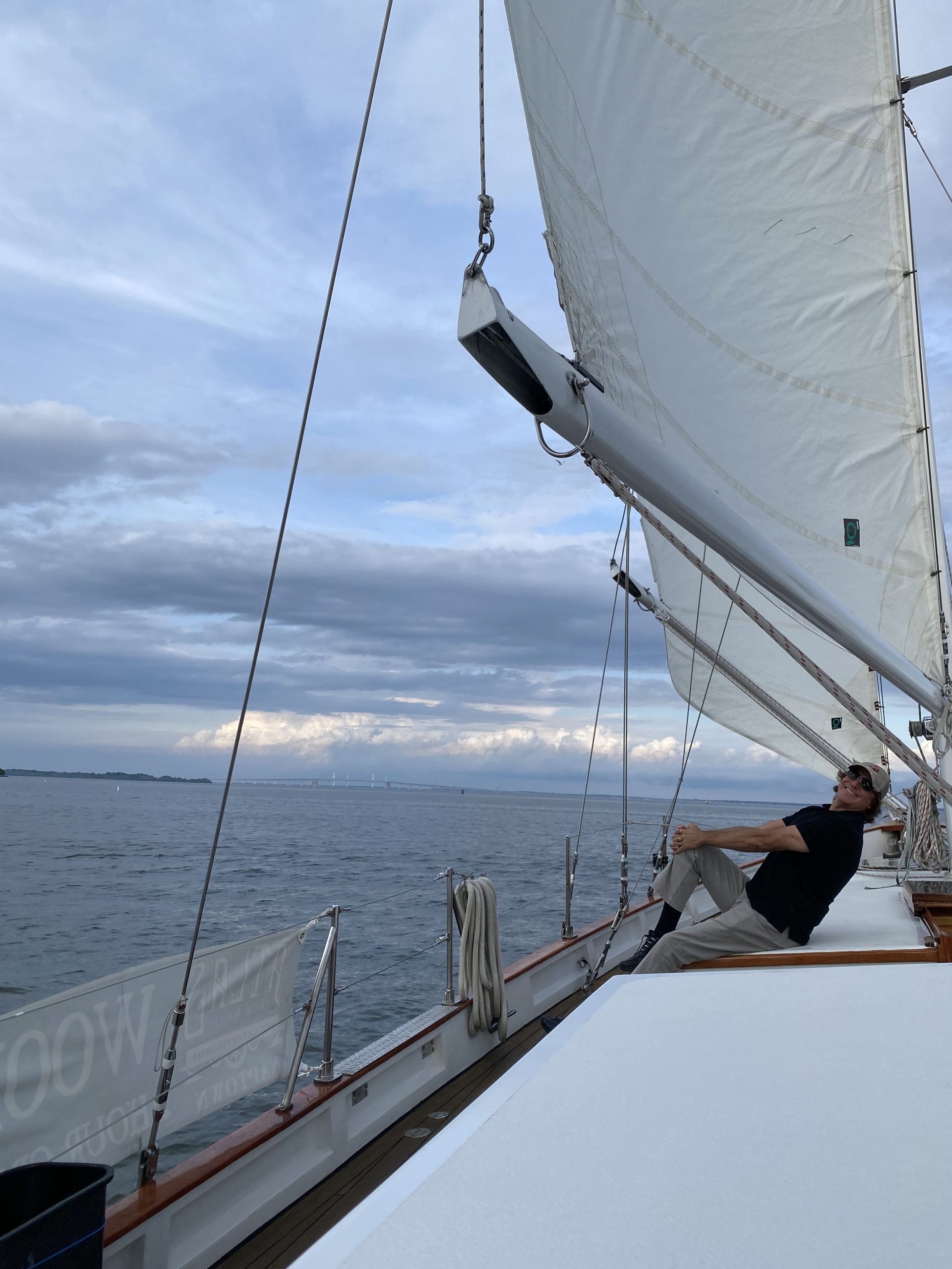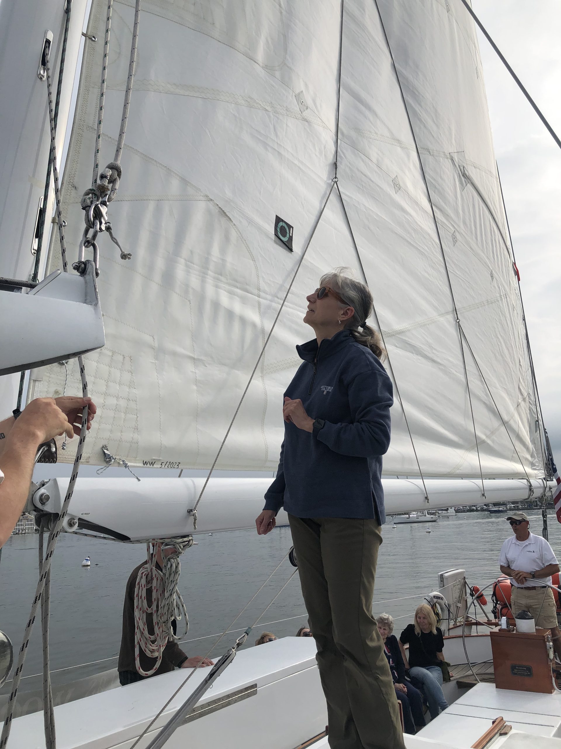 Julie helping to raise the sail on history Monday evening sail Photo by David Detweiler of Sellersville, Pennsylvania