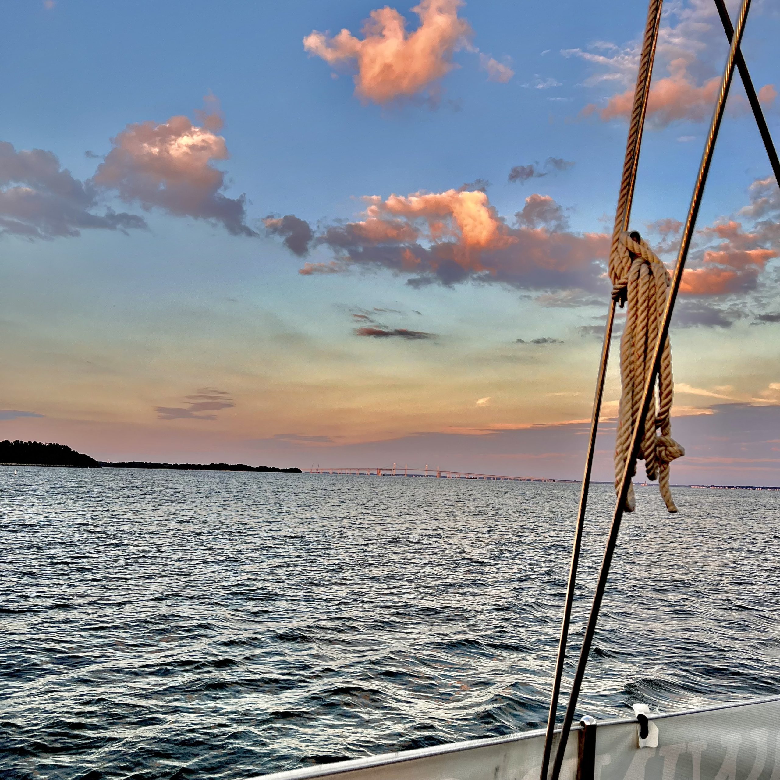 Distant Chesapeake bay and bridge at sunset Photo by Steve Tibbetts of Washington, DC
