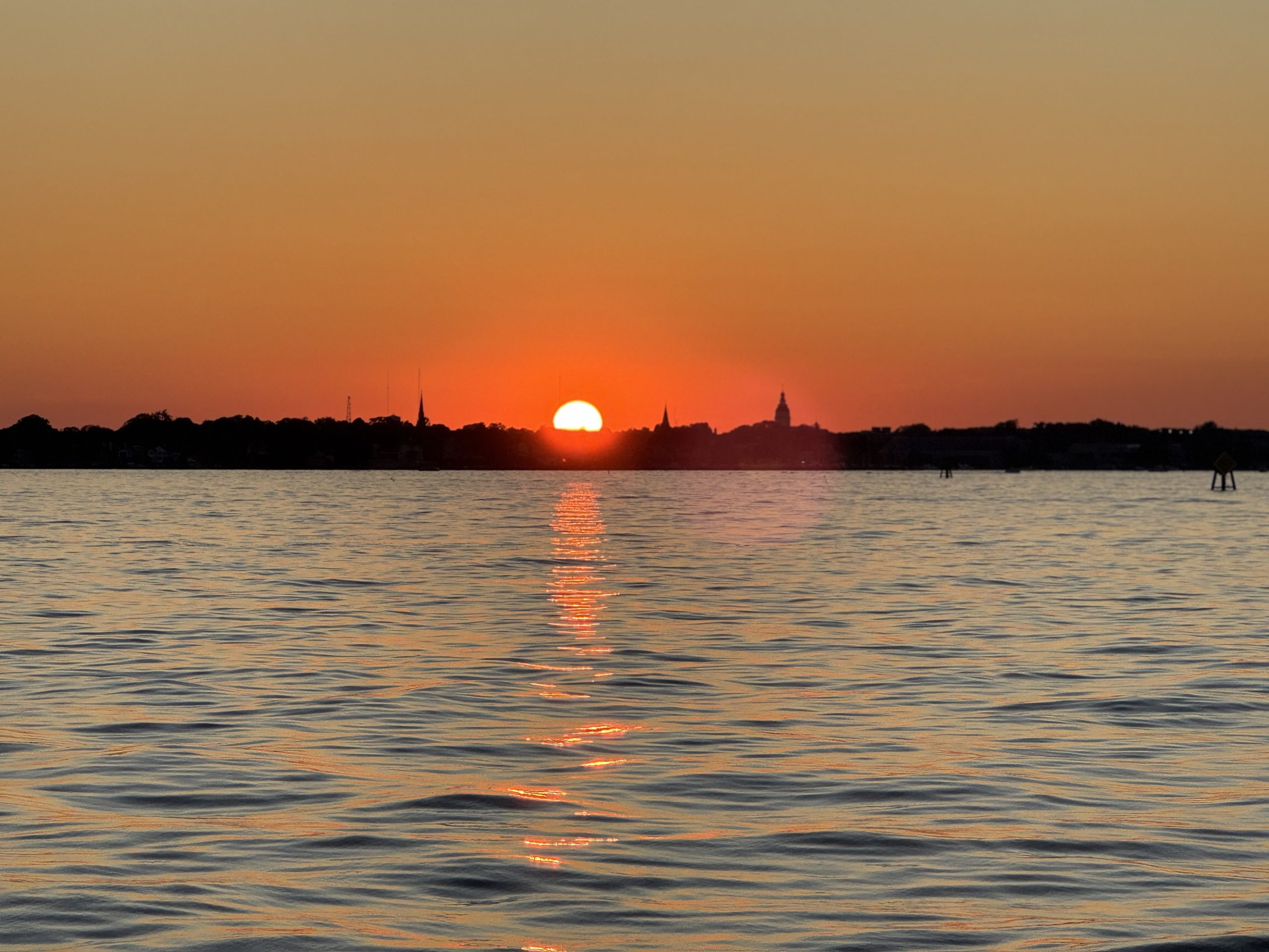 This image was shot from Woodwind on the evening of August 8 in almost ideal sailing conditions. The Captain was most accommodating in lining up the path of Woodwind to capture this scene. Photo by James LaDue of Norman, OK