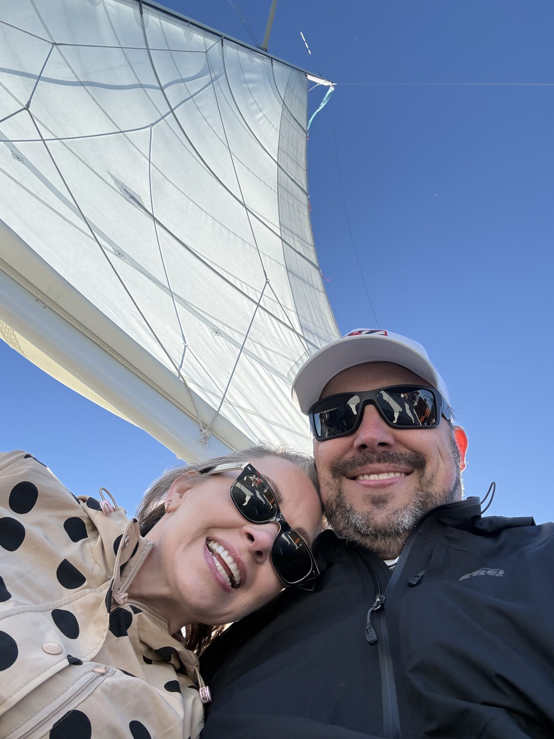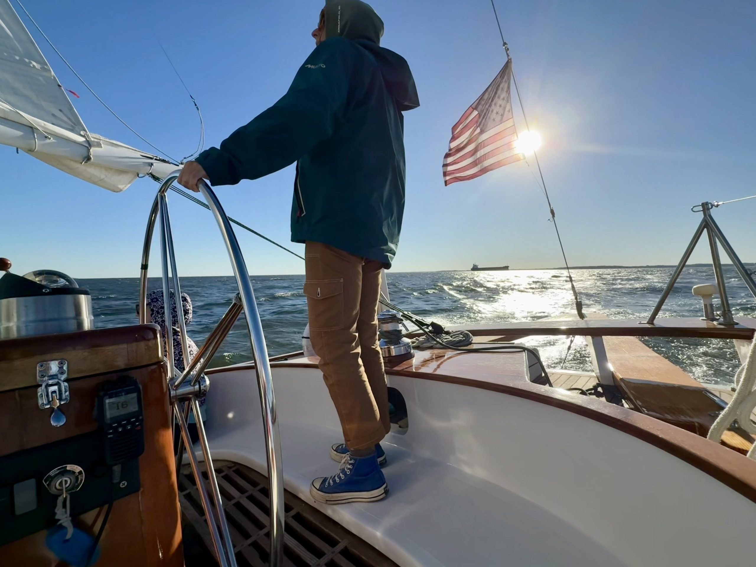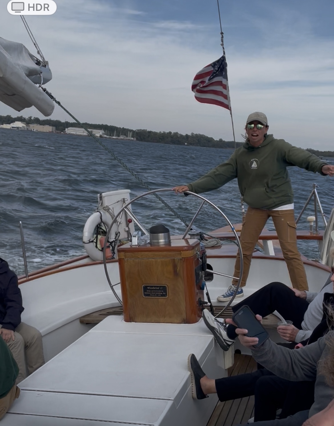 I was the Captain, sailing the Sail Beyond Cancer S/V Anneliese when we took this photo on 5 October 2025. Photo by Jay Crouthers of Crownsville, MD