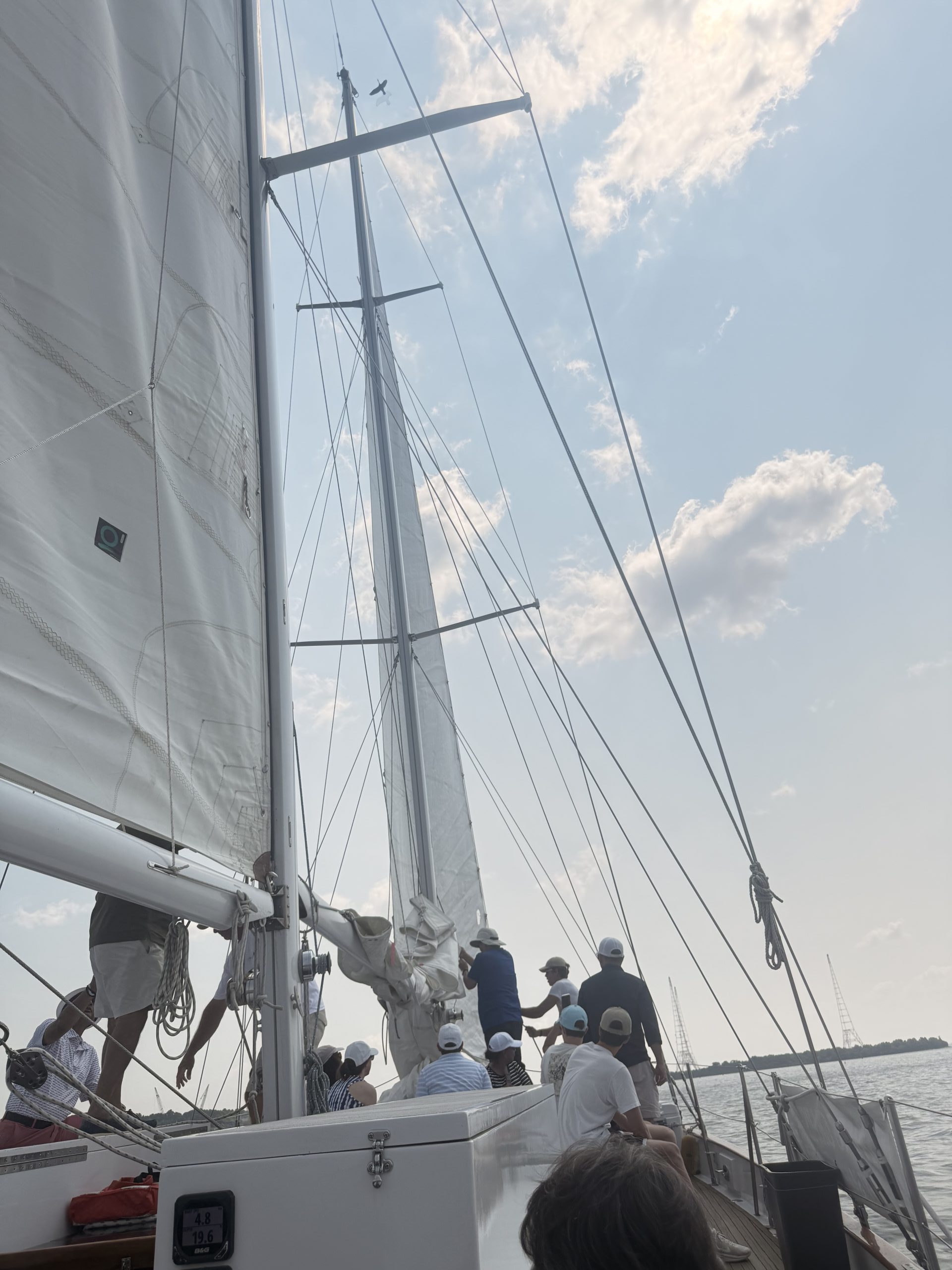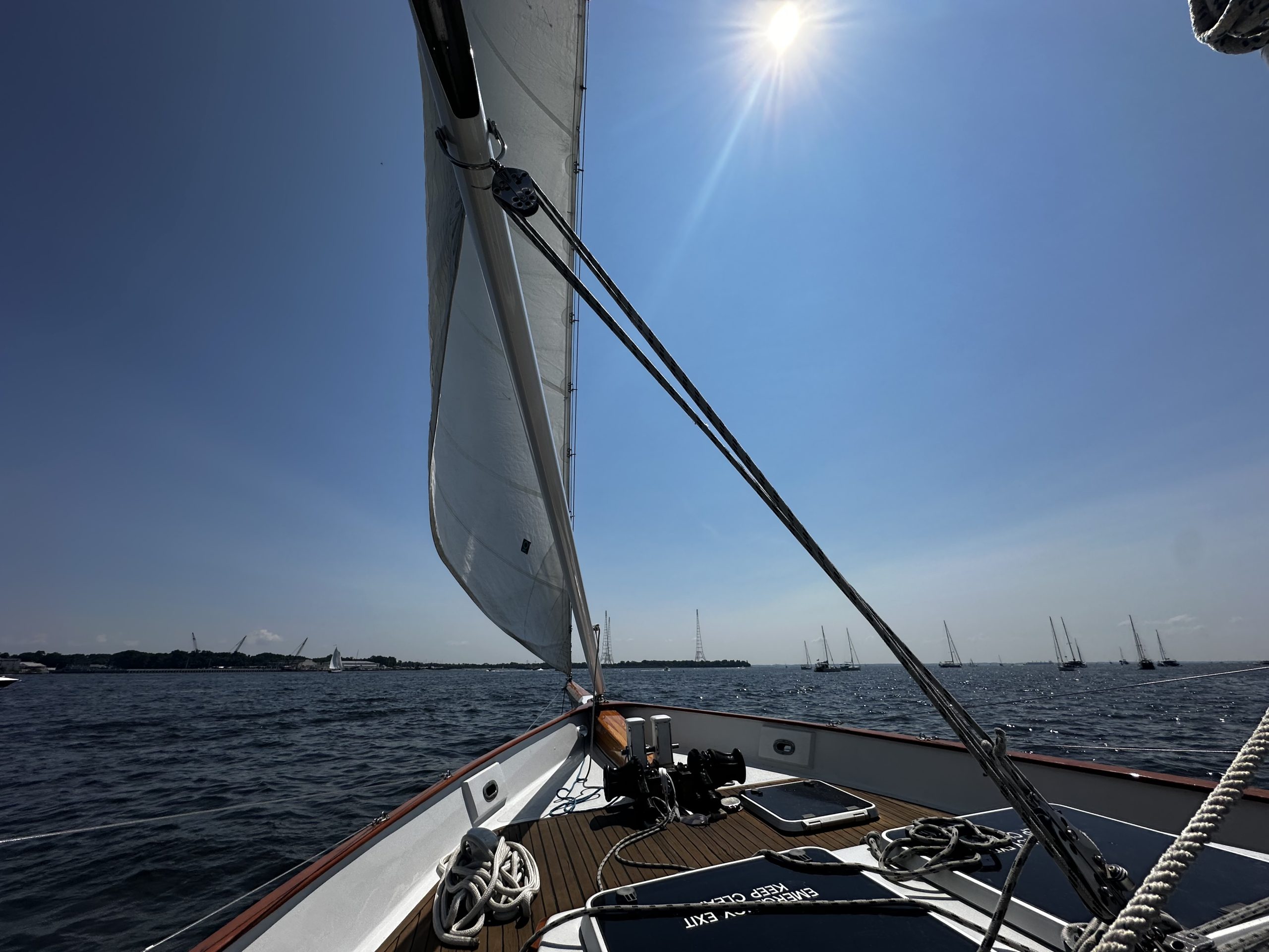 Wind stopped but the contrast of the sails, rope and sky didn’t seem to matter l Photo by Kim Sampson of Halethorpe, MD