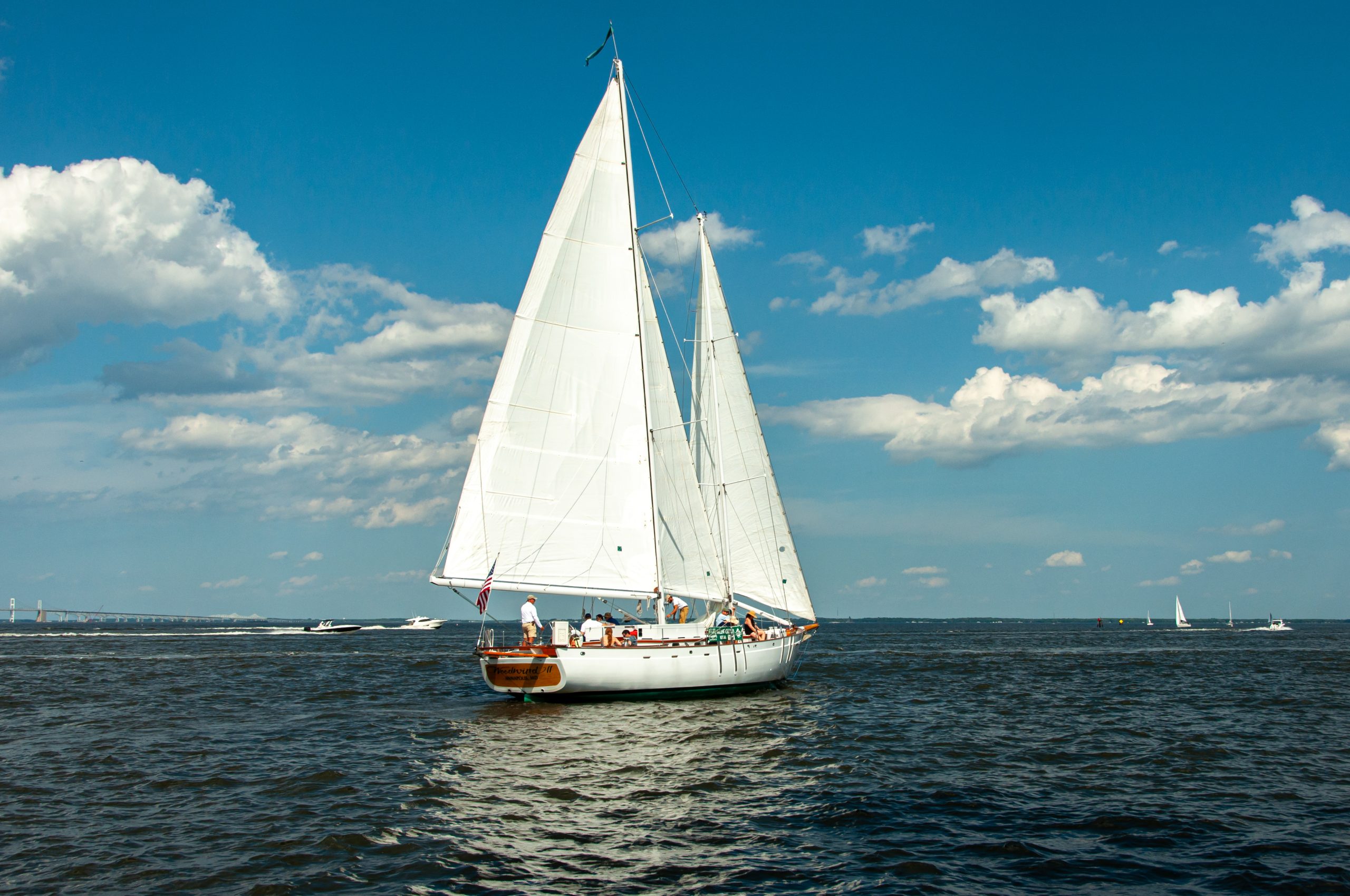 The Woodwind II, as seen from the Woodwind, sails out of Annapolis Harbor Photo by Patrick McKern of Poulsbo, WA