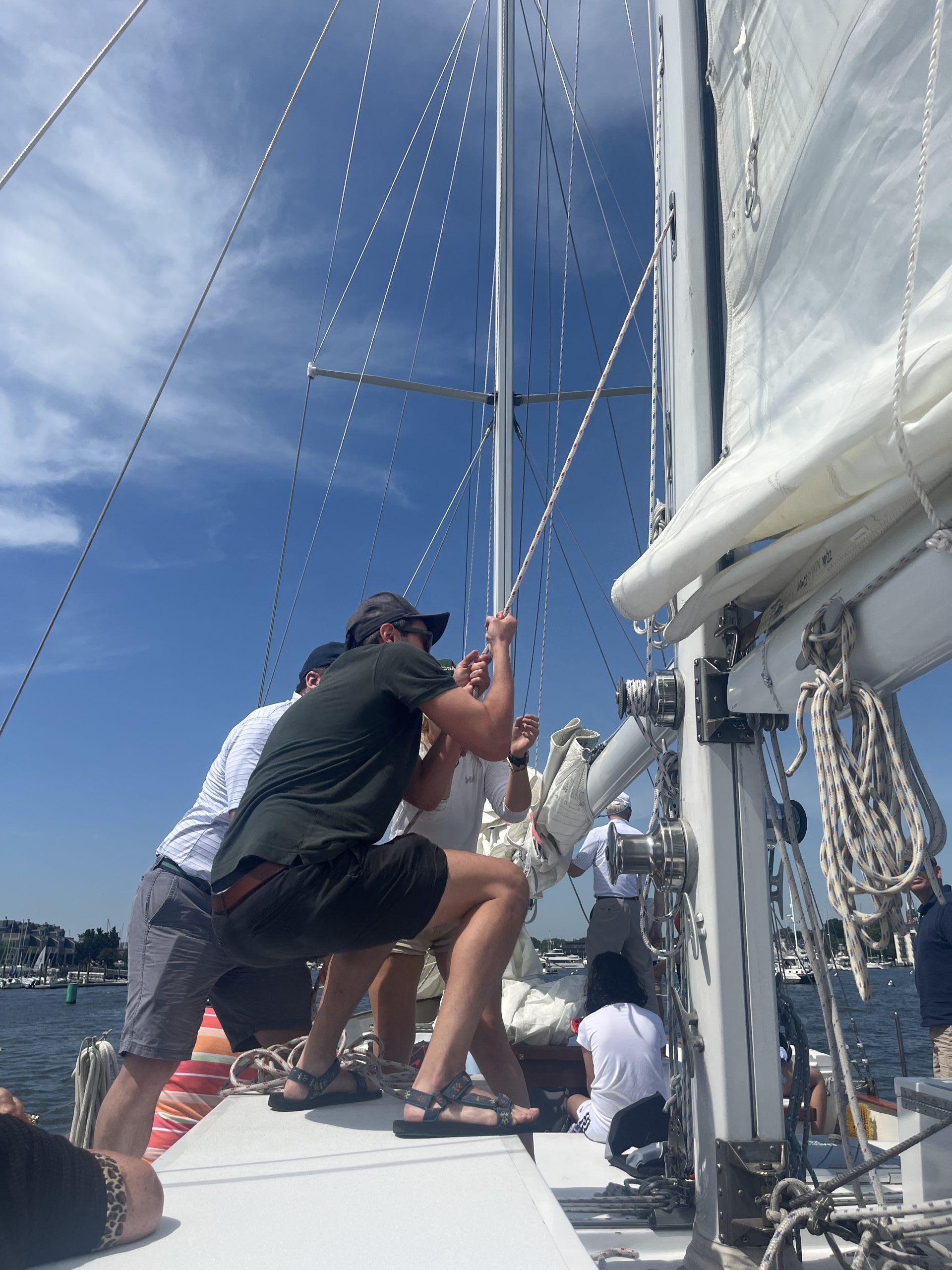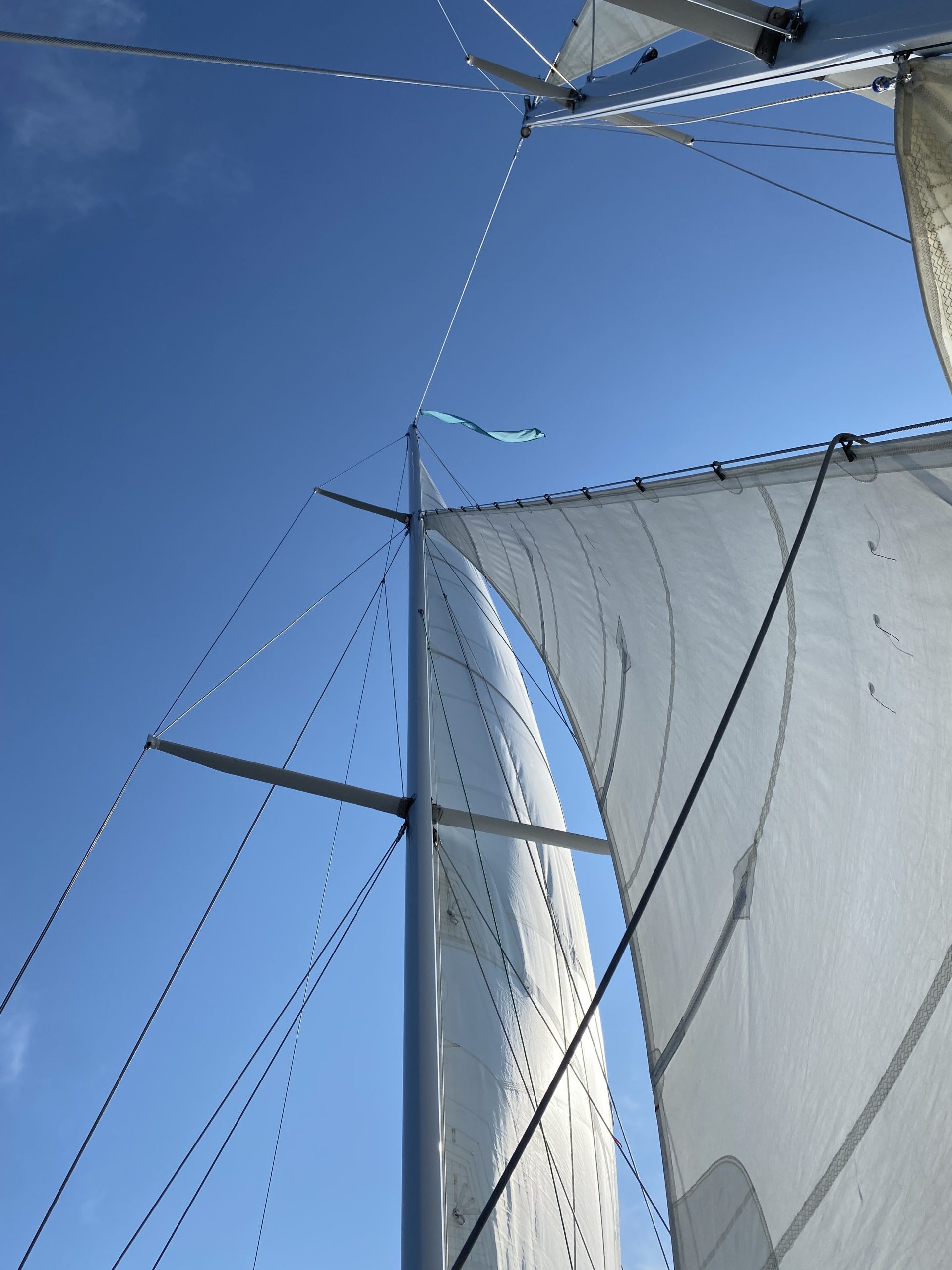 I was laying on the deck of the boat, and looked up towards the sky—the sails holding up the heavens above. Photo by James Luo of North Potomac, MD