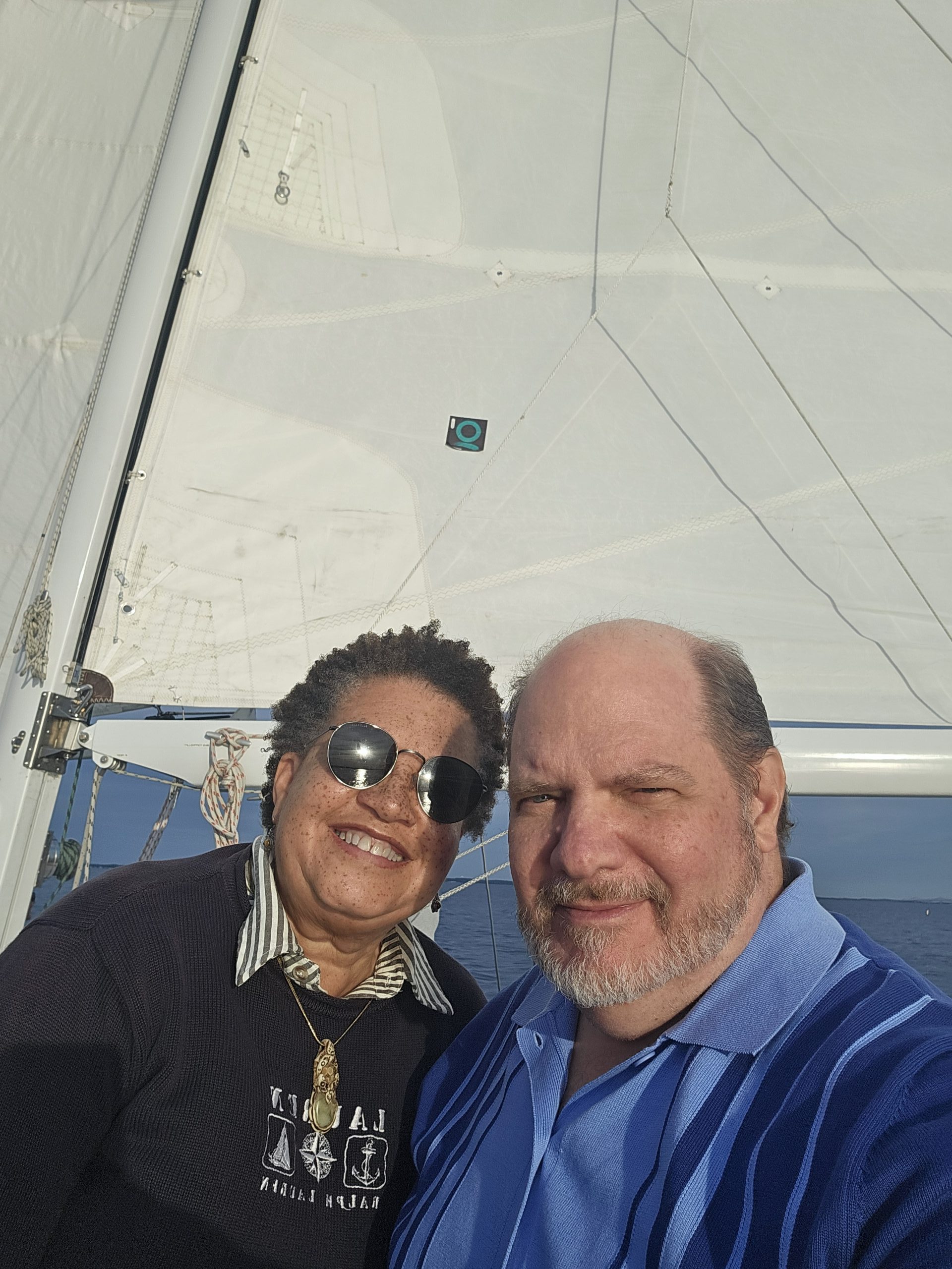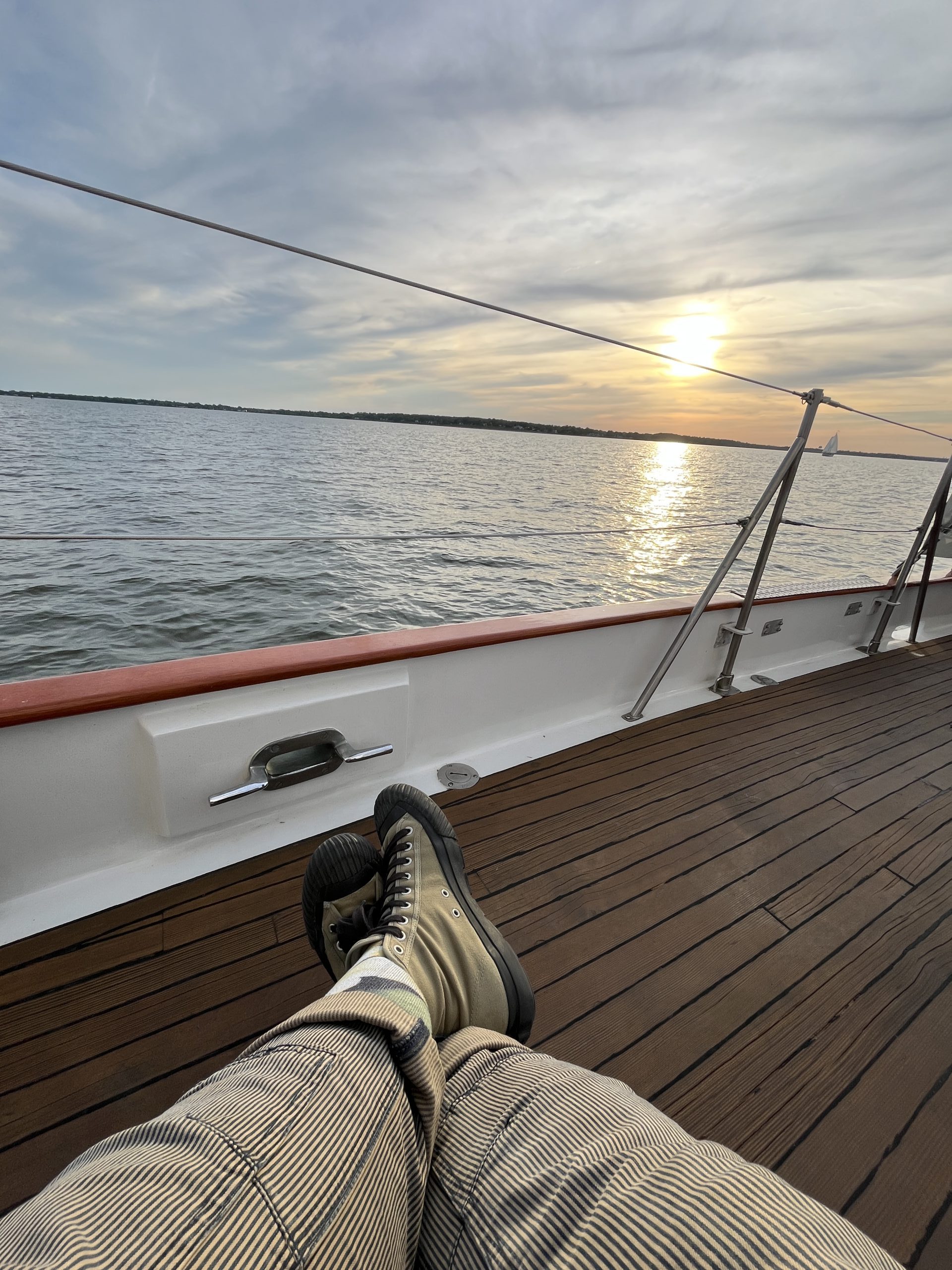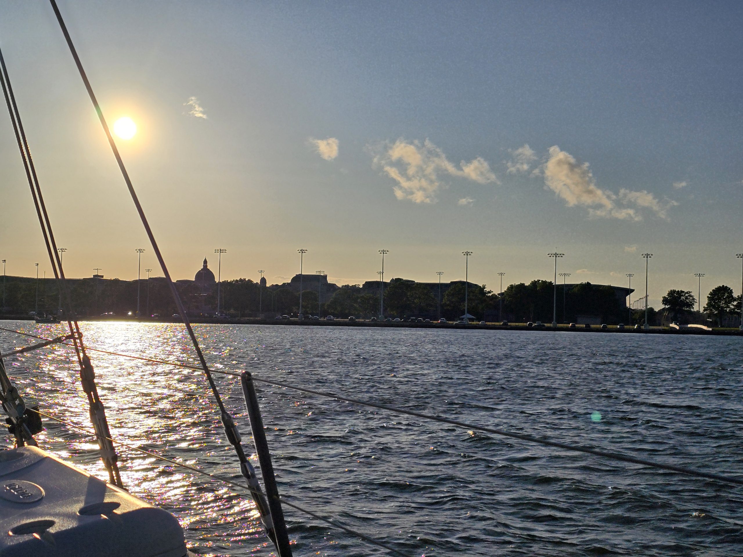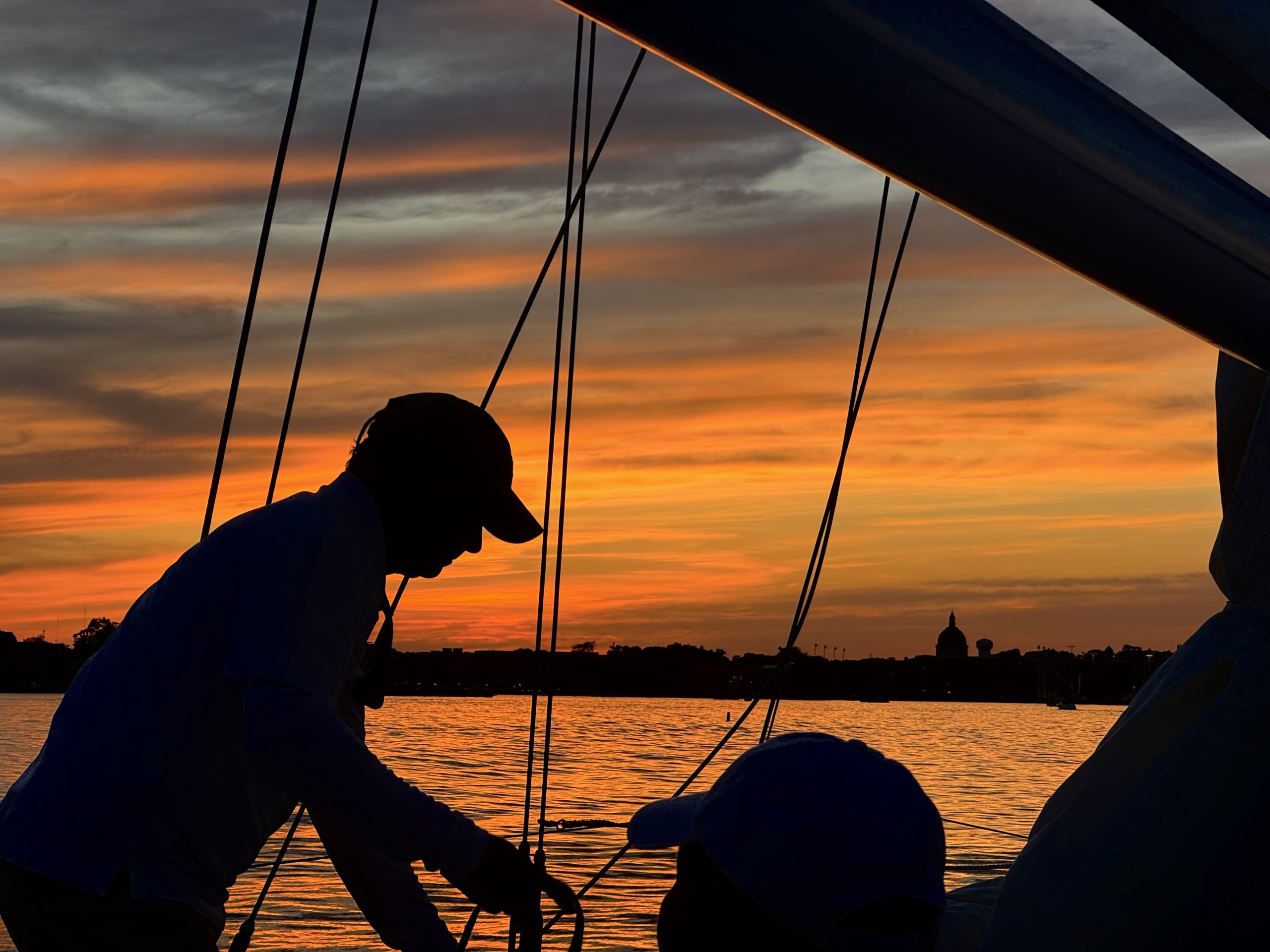 Lowering sails after a sunset cruise (Woodwind II) Photo by Juliana Augustine of Annapolis, MD