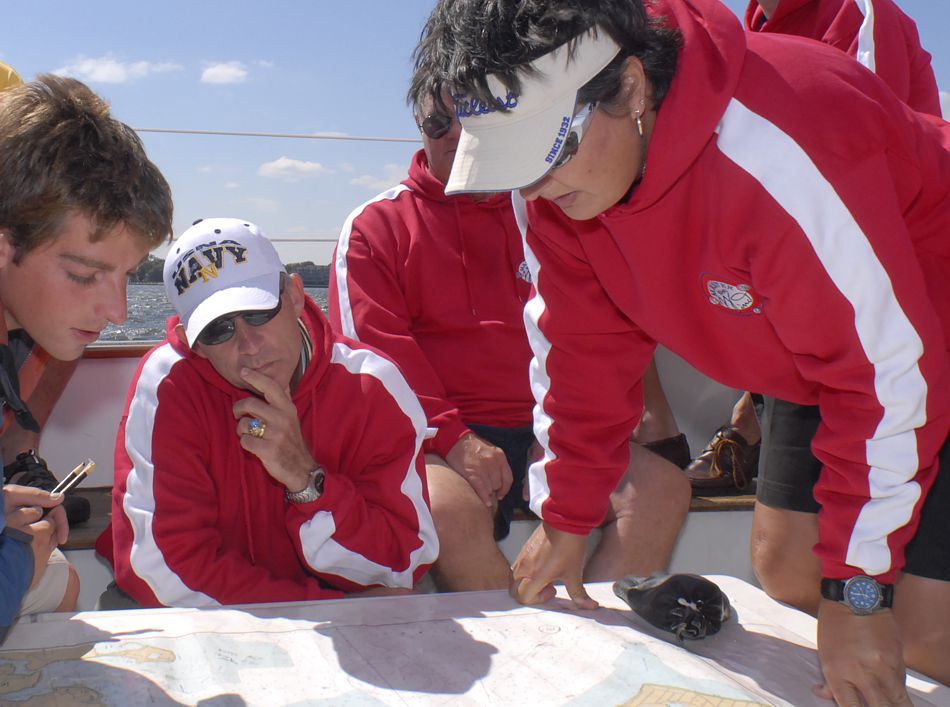 The first half of the program involves an engaging sail training session with our crew. Each team is assigned to one of four stations aboard each boat. Two stations will learn how to trim sails, one will handle the jib and staysail, the other the fisherman sail. The ‘Nav. Team,’ the third station, will learn how to find out where the boat is on the chart by taking a “fix” and then they’ll learn how to plot a course and communicate this information to the last station who will learn how to steer these 74-foot schooners! Coordination and cooperation are essential to sailing these boats efficiently, and communication between each station is a must. Your team will select a ‘Captain’ who will facilitate this communication, and lead you to victory! Our crew prides themselves on being friendly and informative teachers.